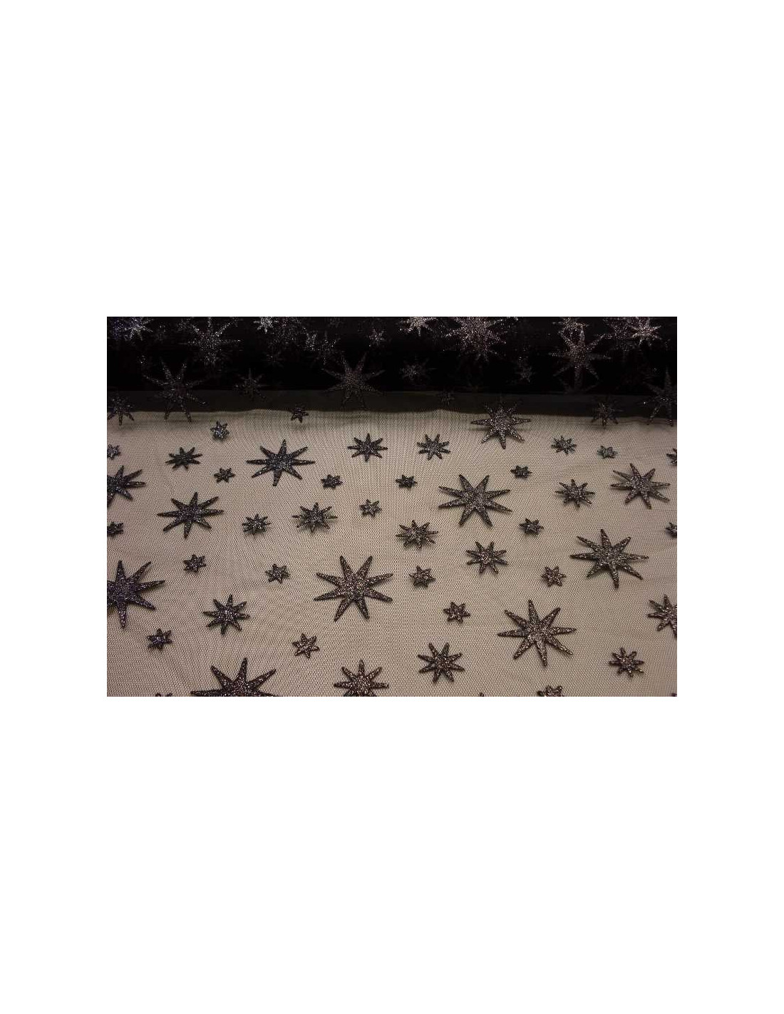 Tela de Tul con Estrellas de escarcha sobre una base de color uniforme. Fabricado en poliamida 100% se trata de un tipo de tela adaptable y no demasiado pesada, resulta ideal para la manualidades, decoración navideña y la confección de disfraces de Carnaval y vestidos de fiesta. Ofrece Ancho de la pieza 150 cm.