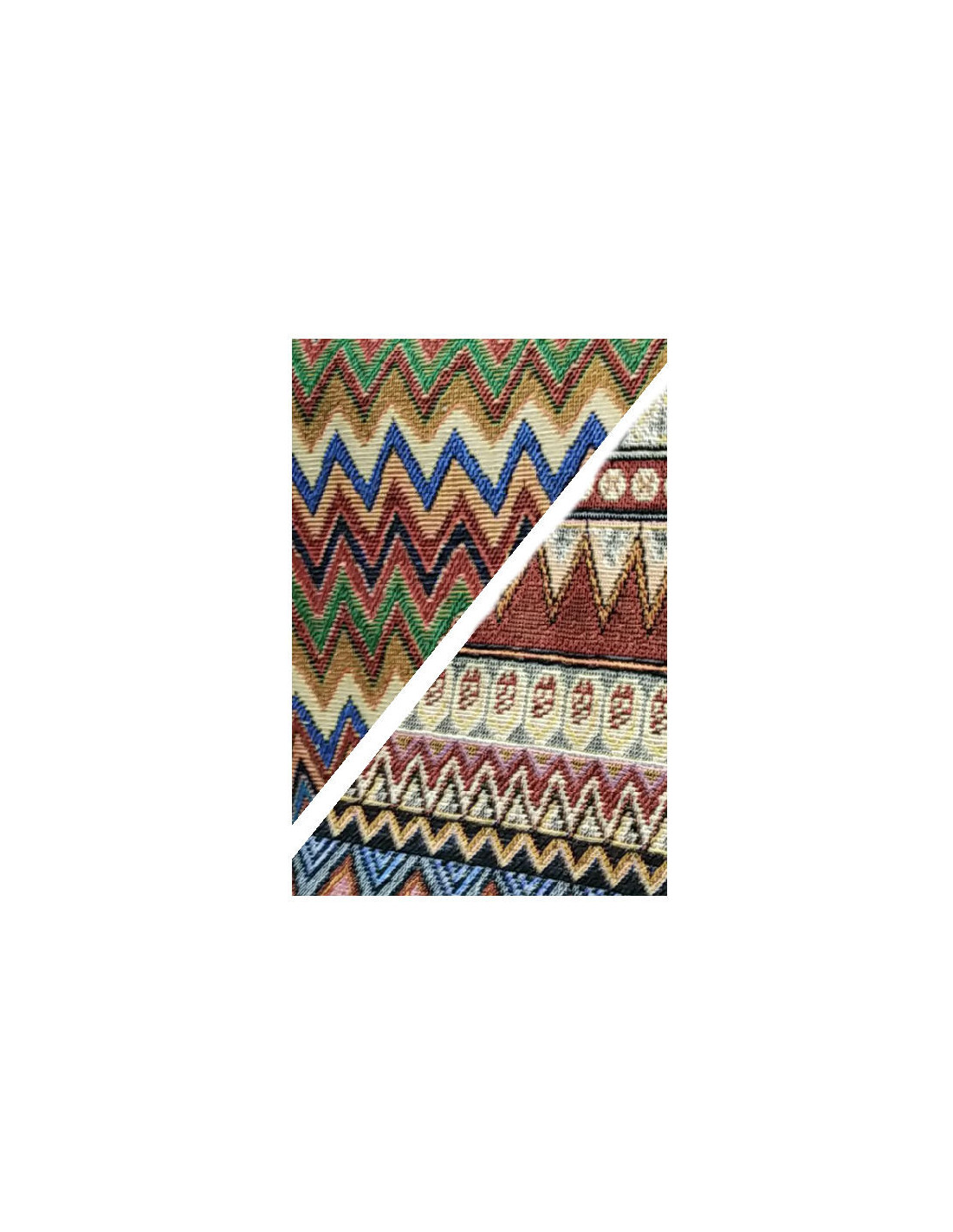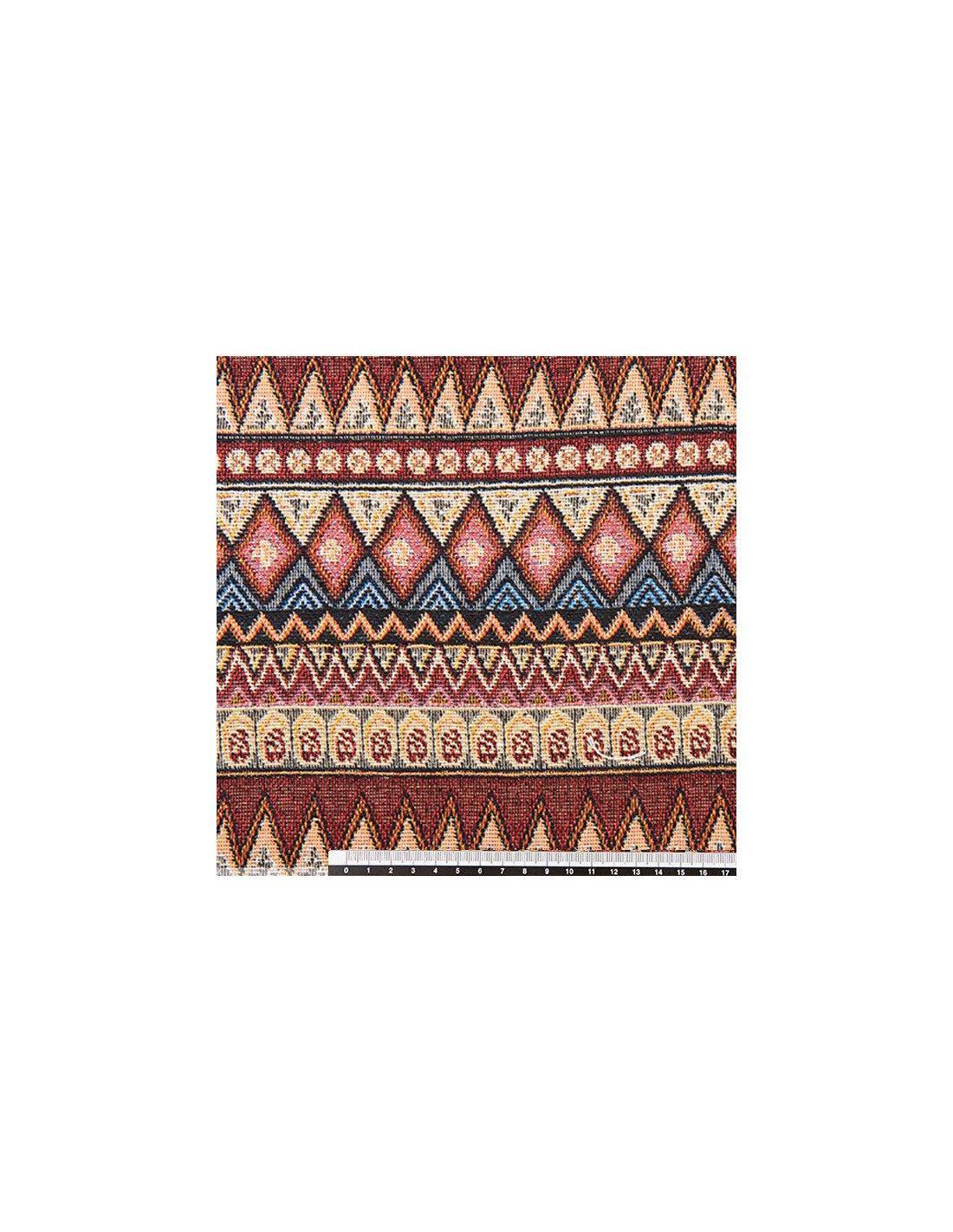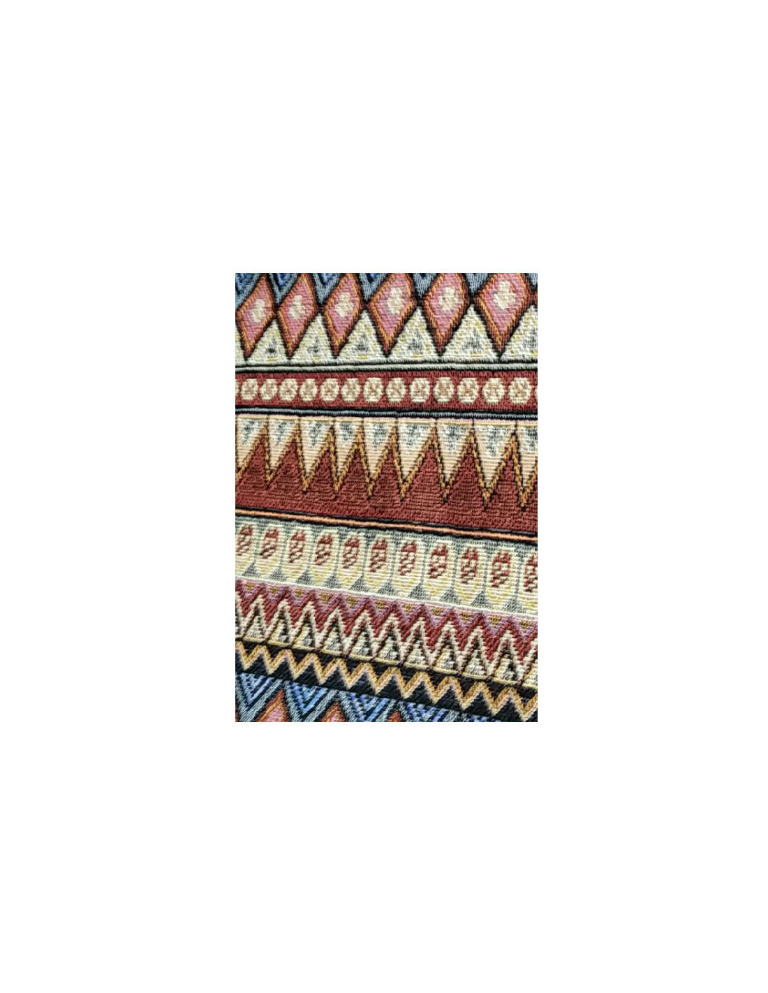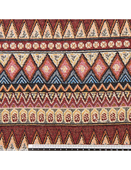 Tejido étnico Aladín en forma de picos, fabricada en 100% poliéster. Tiene un ancho de 150 cm y las rayas están a lo ancho de la tela.