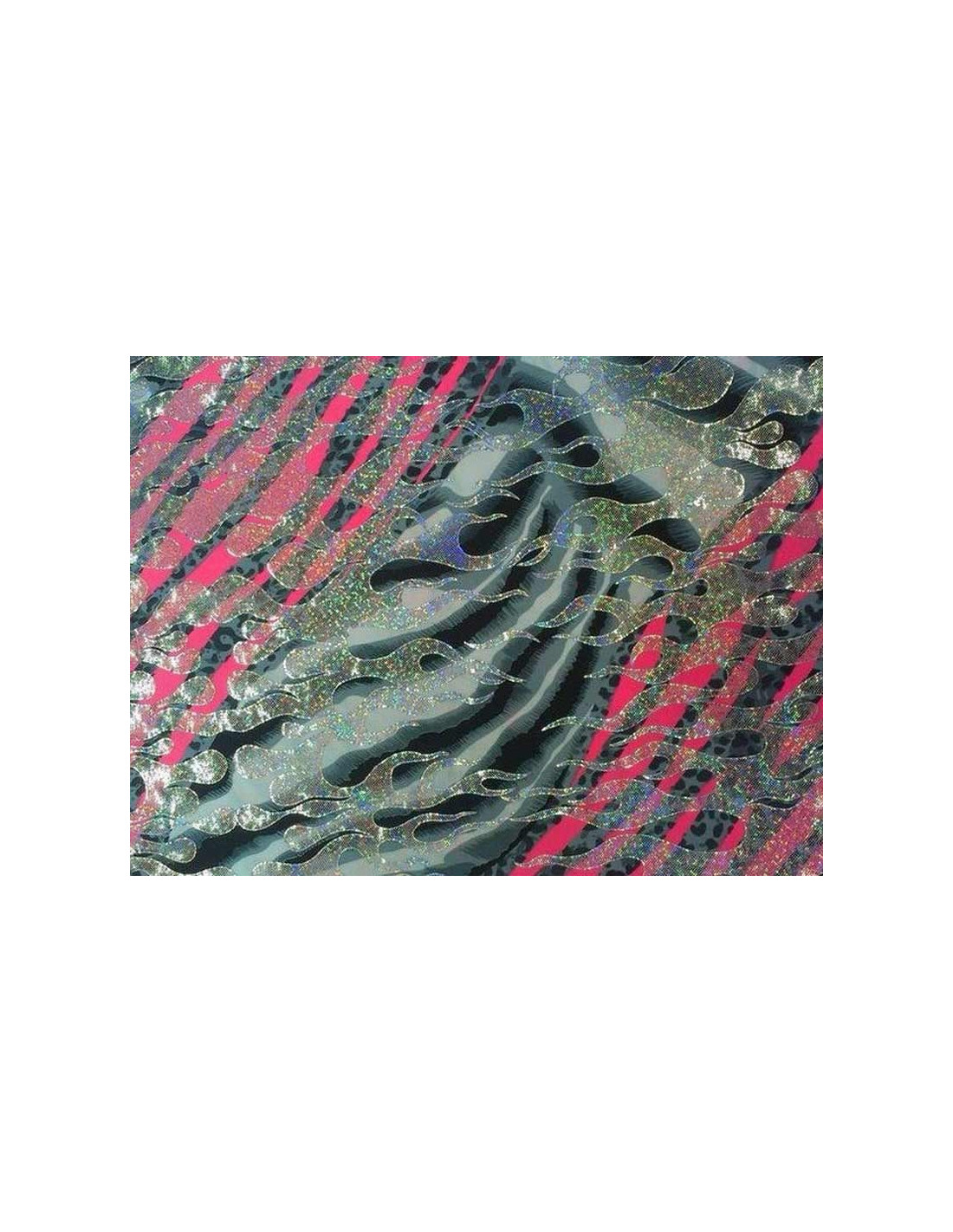 Tela de lycra con estampado de llamas.Tela con mucho colorido y brillo ideal para prendas ajustadas para danza,espectáculos disfraces...