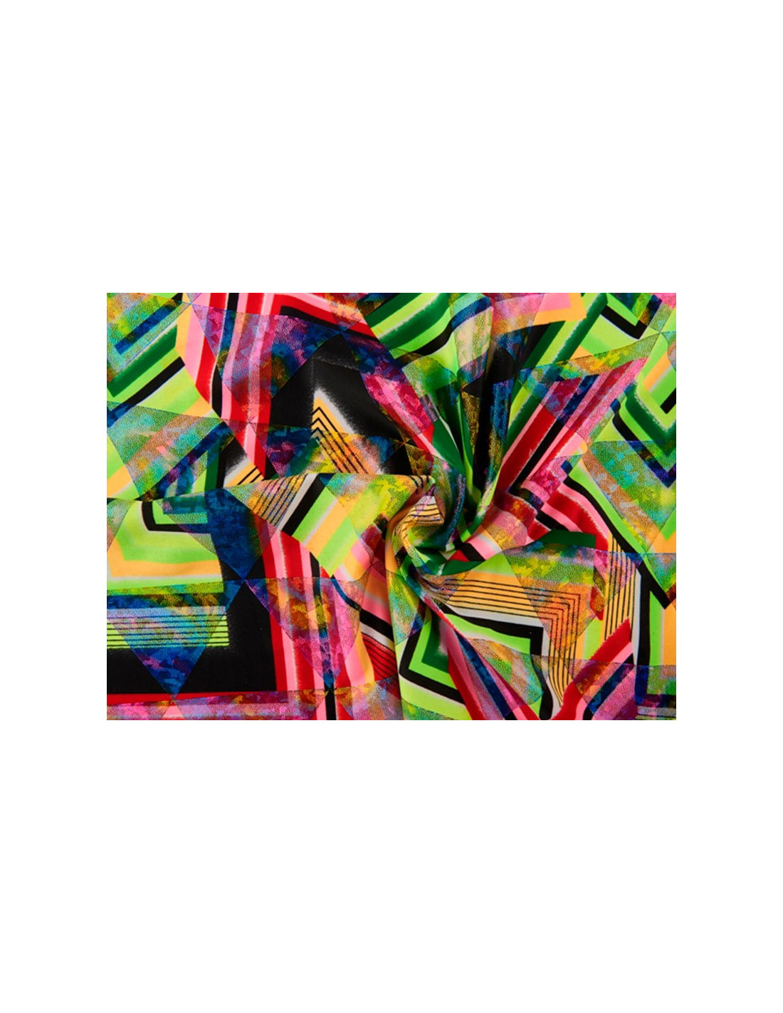 Tela de lycra estampada.Tela con mucho colorido y brillo ideal para prendas ajustadas para danza,espectáculos disfraces...