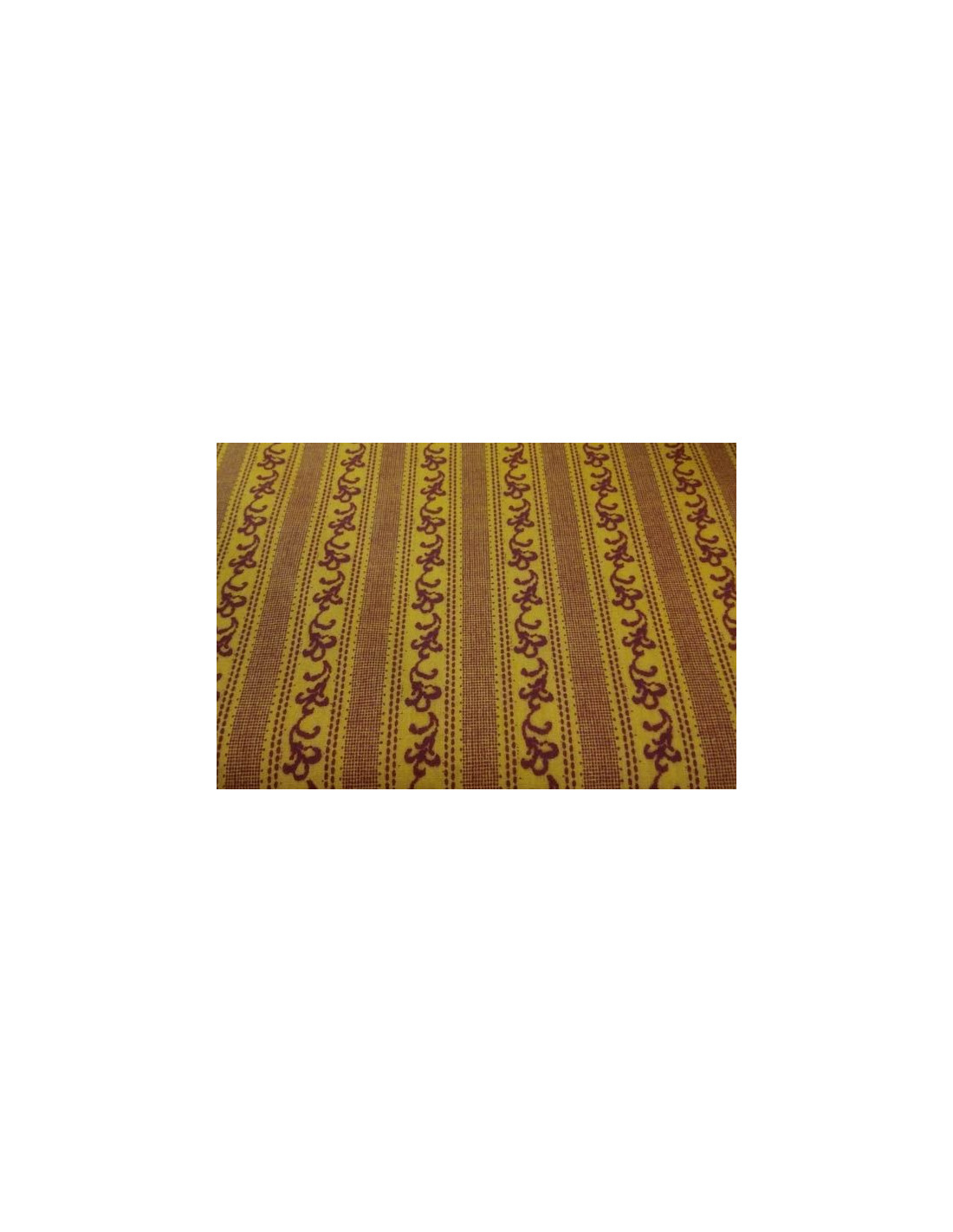 Tejido percal mostaza con rayas finas en granate