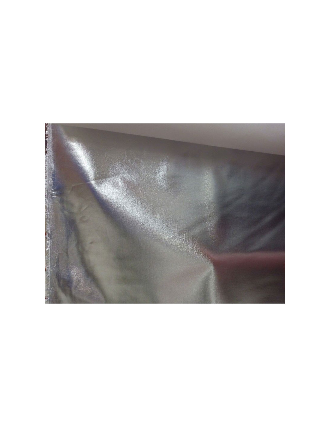 Tejido popelín elástico metalizado en color plata. Ancho pieza 150cm
