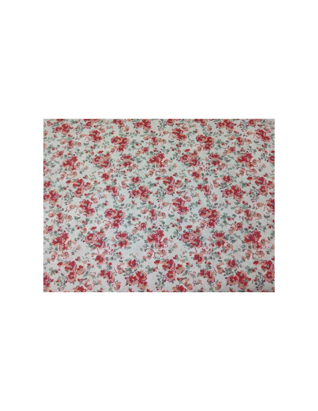 Popelín fabricado el 100% en algodón. Disponible en color base beige con estampado de flores en tonos rojos y verdes. Se trata de un tejido fino, muy suave y sostenido, ideal para su uso en la confección de cojines y sábanas. Se venden en rollos de 15 metros. Compra mínima 1 m.