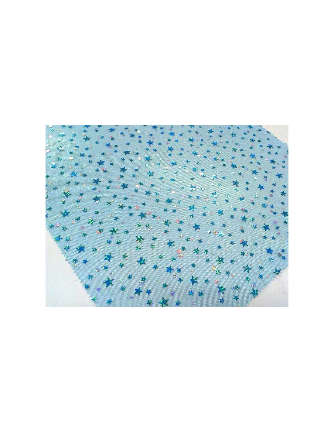Tejido de tul decorado con estrellas y lentejuelas irisadas. Ancho tejido 150cm. Se vende por metro. Unidad mínima de venta 1m.