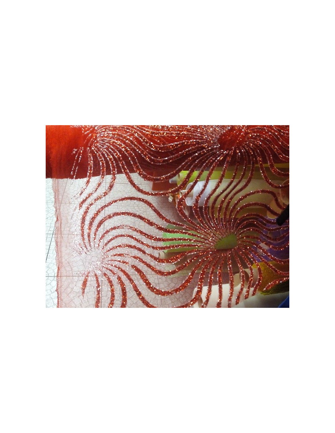 Tela fantasía tul estampado con purpurina. Precio por metro con una anchura de 1,50m.