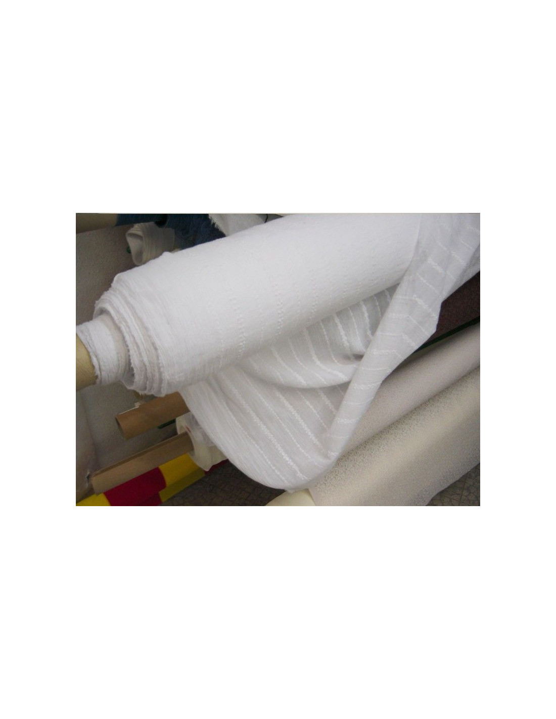 Tela de algodón con rayas bordadas, este tejido es muy agradable al tacto y muy fresco, es ideal para hacer camisas o vestidos para el verano.