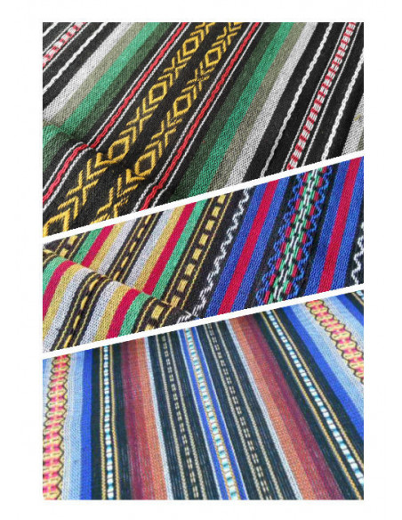 Esta tela es ideal, para disfraces de mejicanos, disfraces etnicos o para hacer detalles de disfraces para hippies.  También es muy utilizada en vestidos regionales, para hacer alforjas o pequeños detalles.