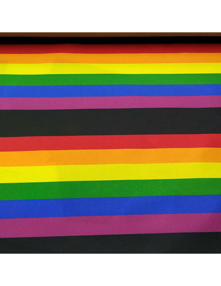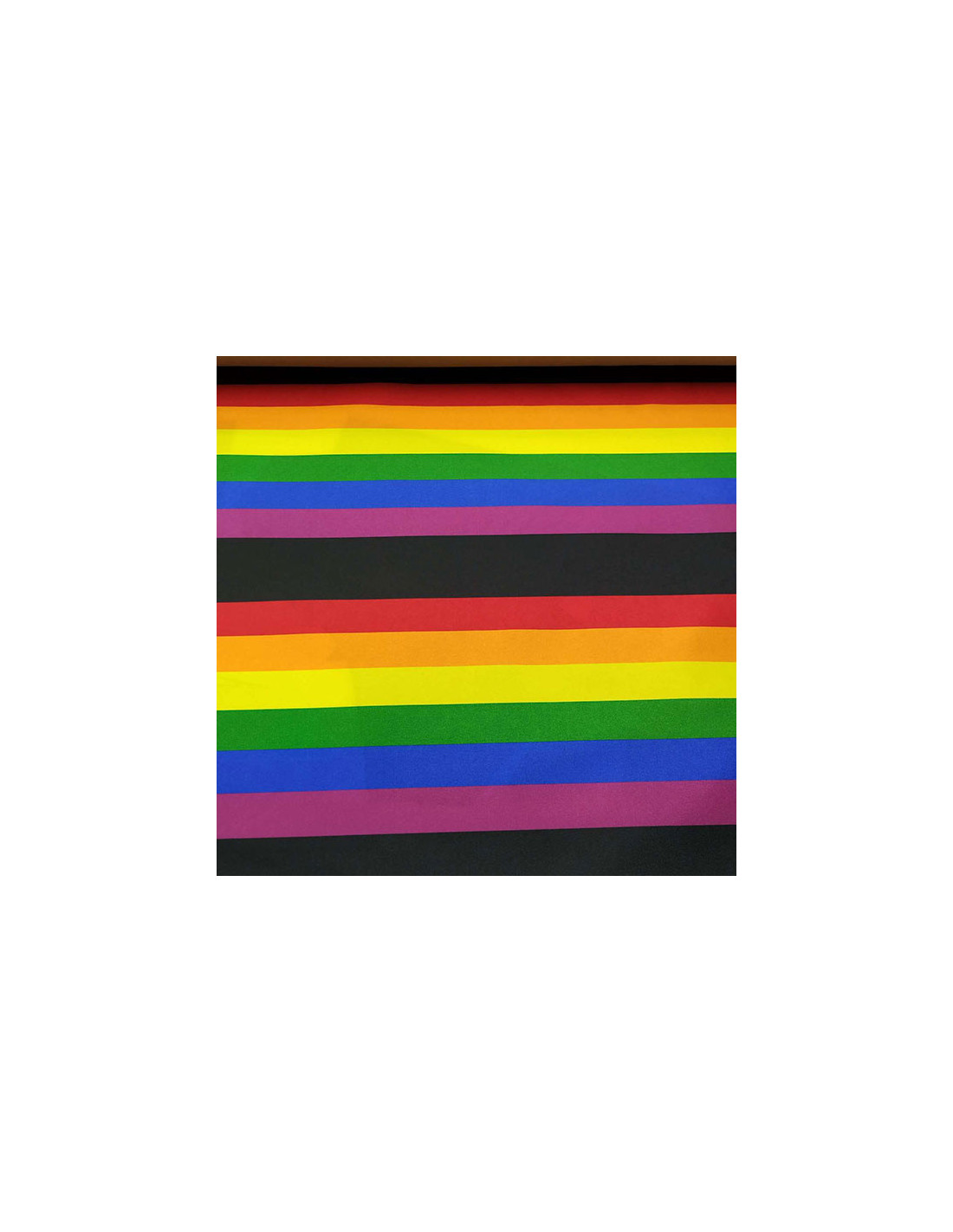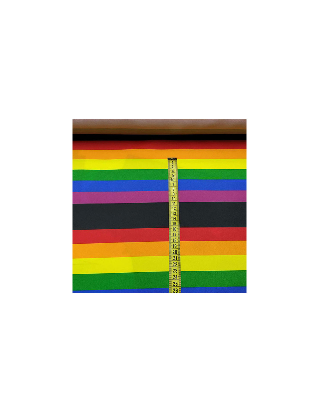 Tela arco iris mascarillas ideal para la confección de mascarillas o pequeñas banderitas. cada franja mide 2,50cm de alto y la línea negra de separación entre arco iris mide 5cm.