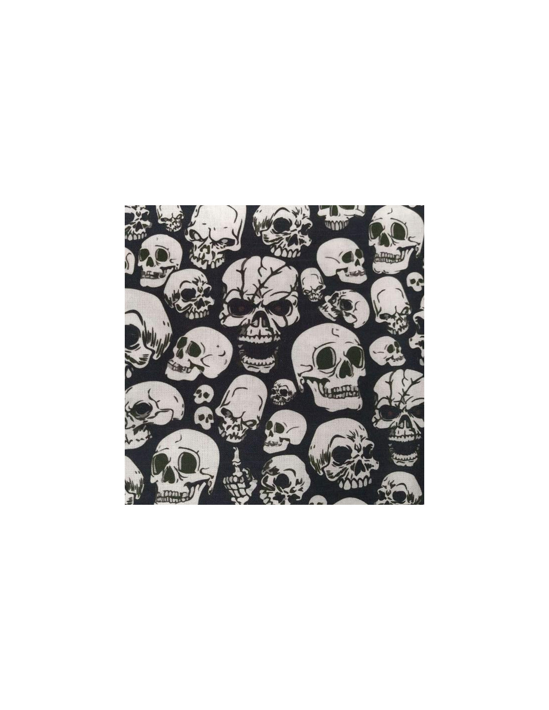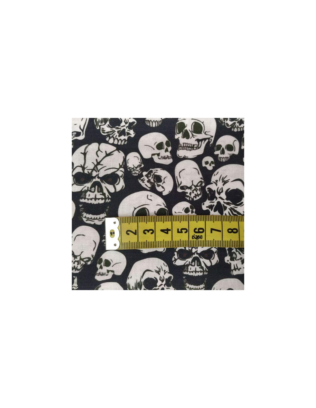 Tela calaveras Halloween con una composición 100% algodón y que mide 150cm de ancho.
