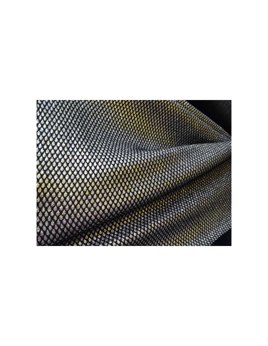 Tejido imitación a la cota de malla de la Edad Media para disfraces medievales. Fabricado den poliéster 100%, con un ancho de 150cm la pieza, está disponible en color plata simulando el aspecto envejecido de las armaduras de la época. Se vende por metros.