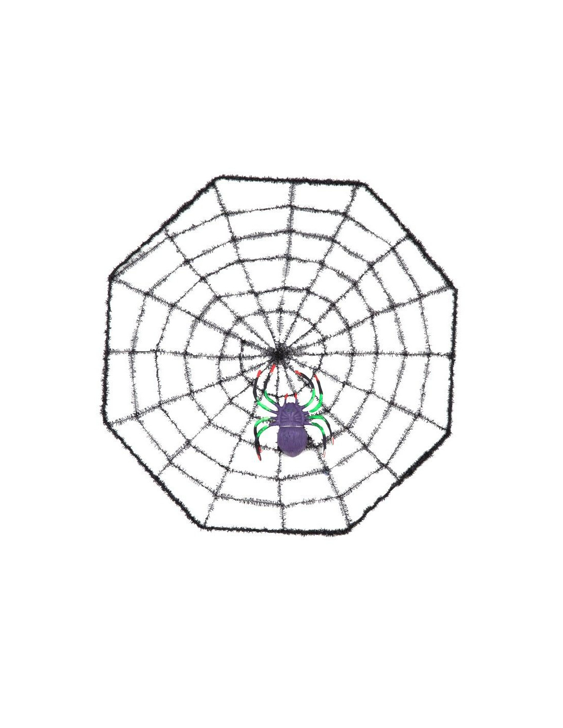 Aterroriza en la noche de los muertos vivientes hasta al más atrevido con esta telaraña decorativa. Fabricada en plástico rígido, esta telaraña decorativa para Halloween presenta unas dimensiones de 40 cm de diámetro y 39cm de alto. Incluye una pequeña araña que intenta llegar hasta el centro. Decorada con espumillón negro.