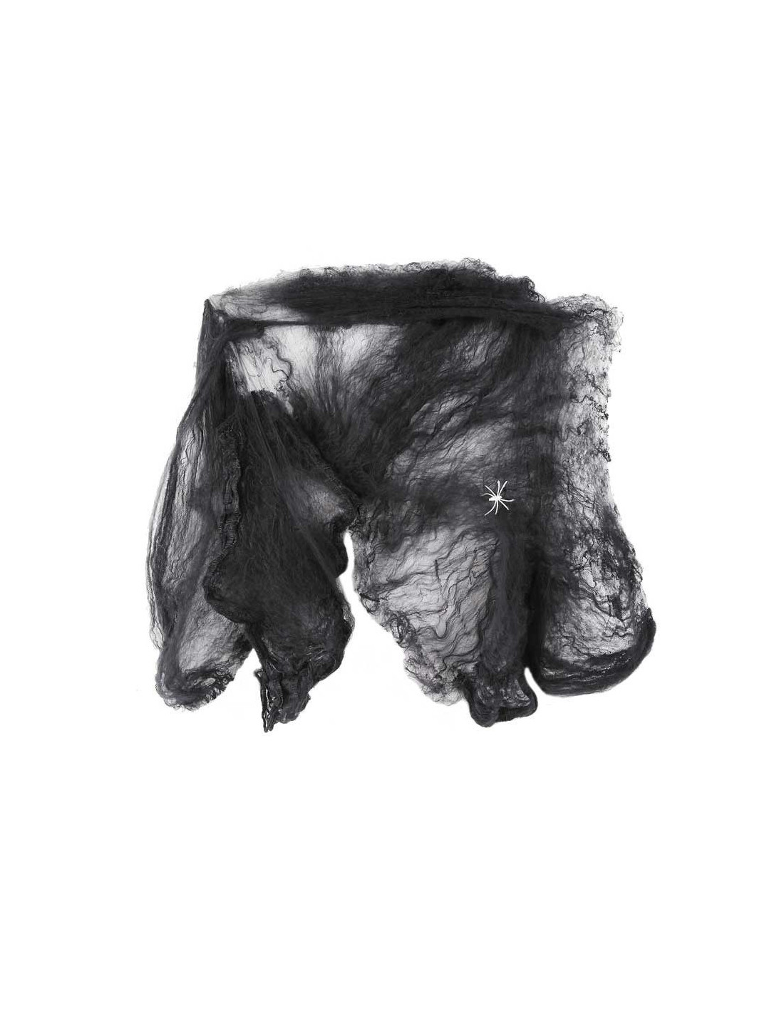 Hilo 20 gramos texturado extensible con 5 arañas de plástico con este producto puedes decorar como si fuesen arañas colgando de su tela de araña muy practico para decoraciones de halloween, tirando del tejido se extiende mucho y tiene un largo alcance.