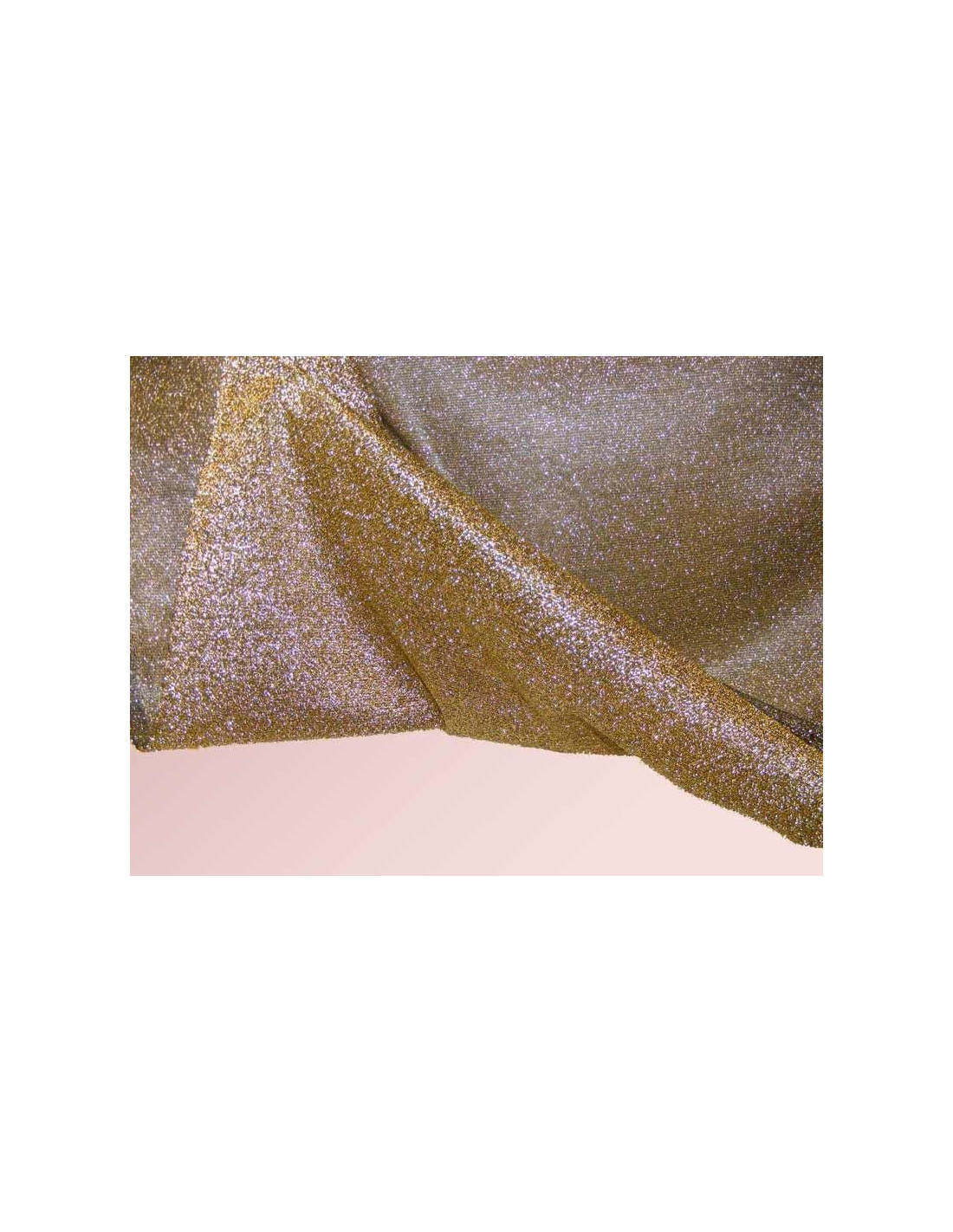 Tela de malla metálica   fabricada en 70% nylon y 30% lurex. Tiene un ancho de 1,50m .Perfecta para prendas de noche y carnaval.Estira ligeramente por un lado