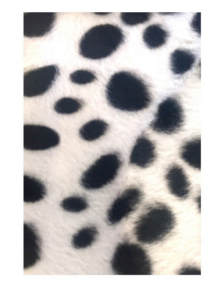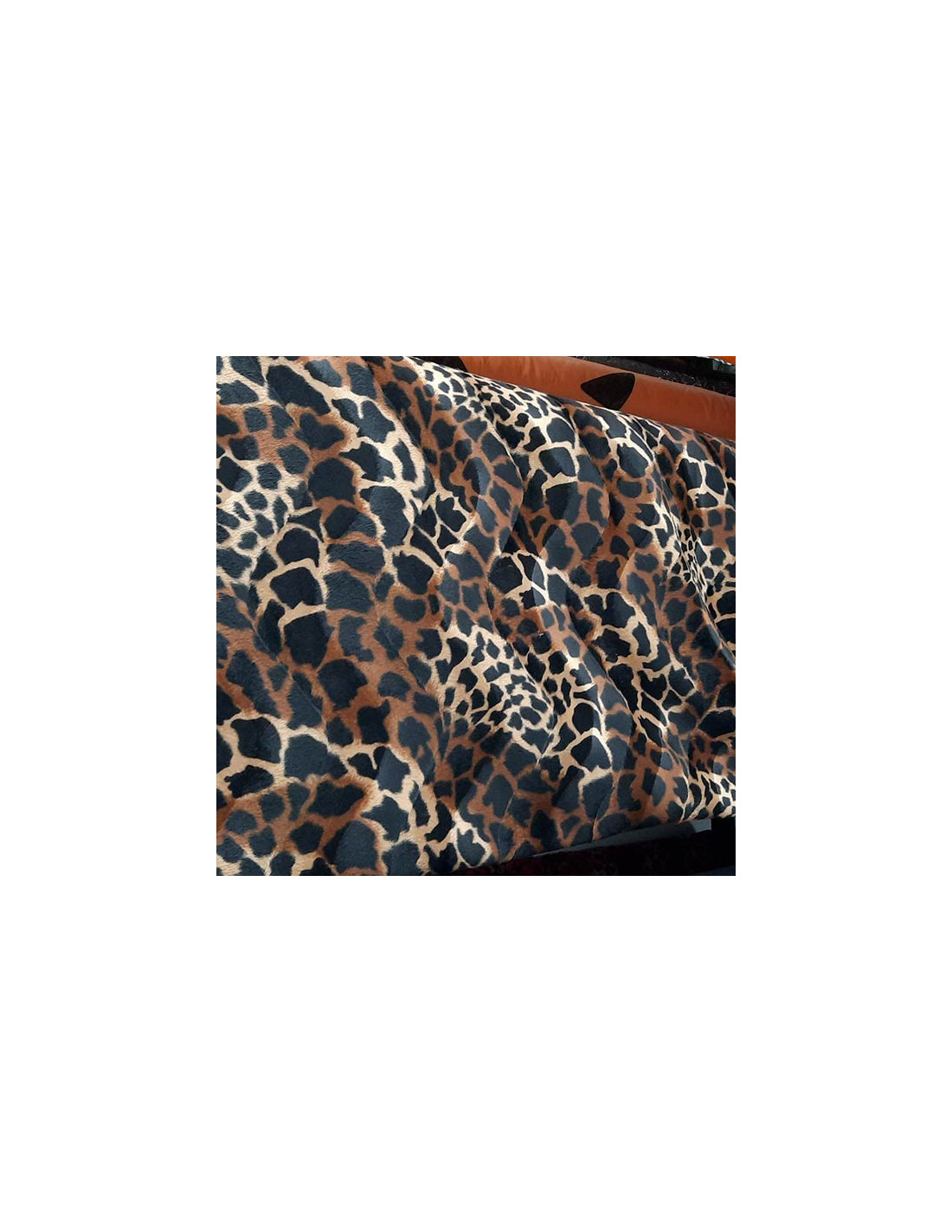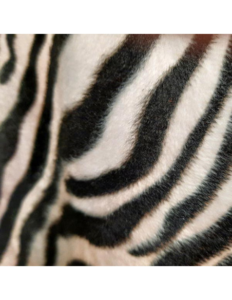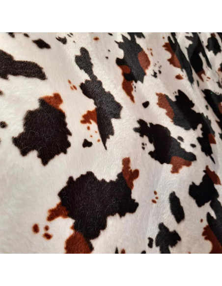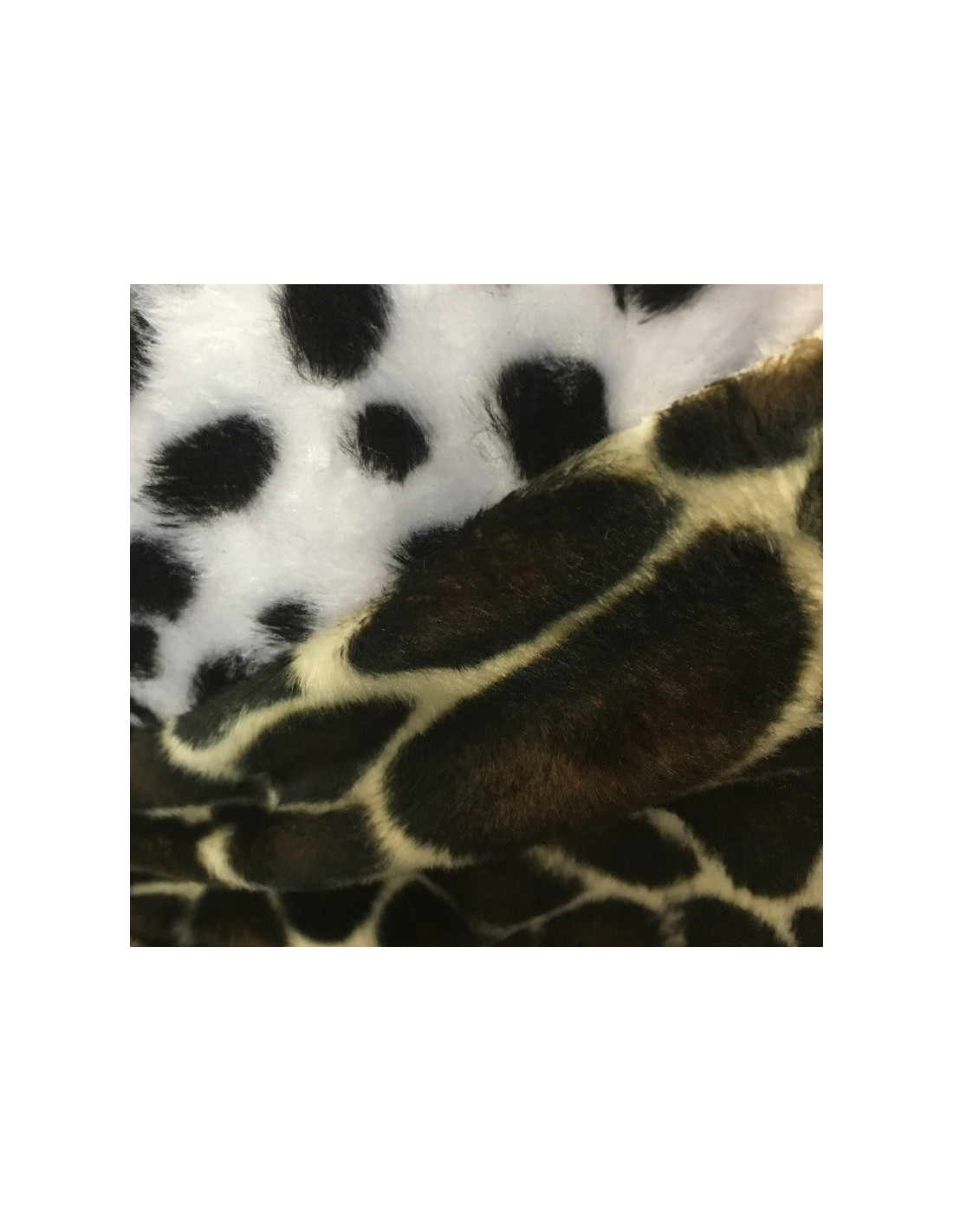 Tejido de Mutón de pelo corto con estampado de animales: vaca, leopardo, cebra, jirafa, potro y tigre. Este tipo de tela, imitación al pelo natural, es ideal para disfraces de animales o la confección de mantas dada su suavidad y aporte de calor.