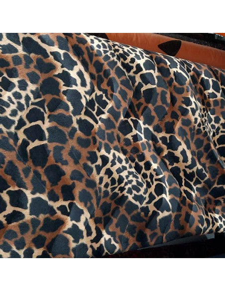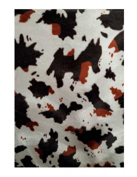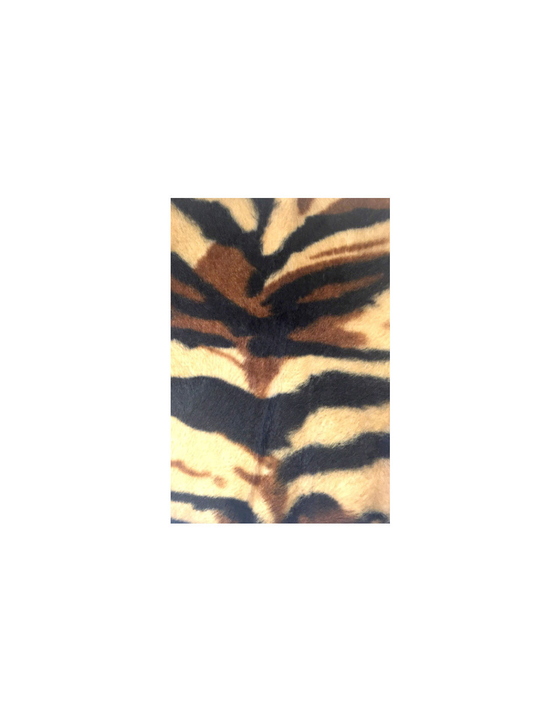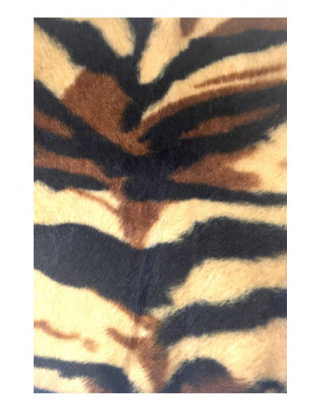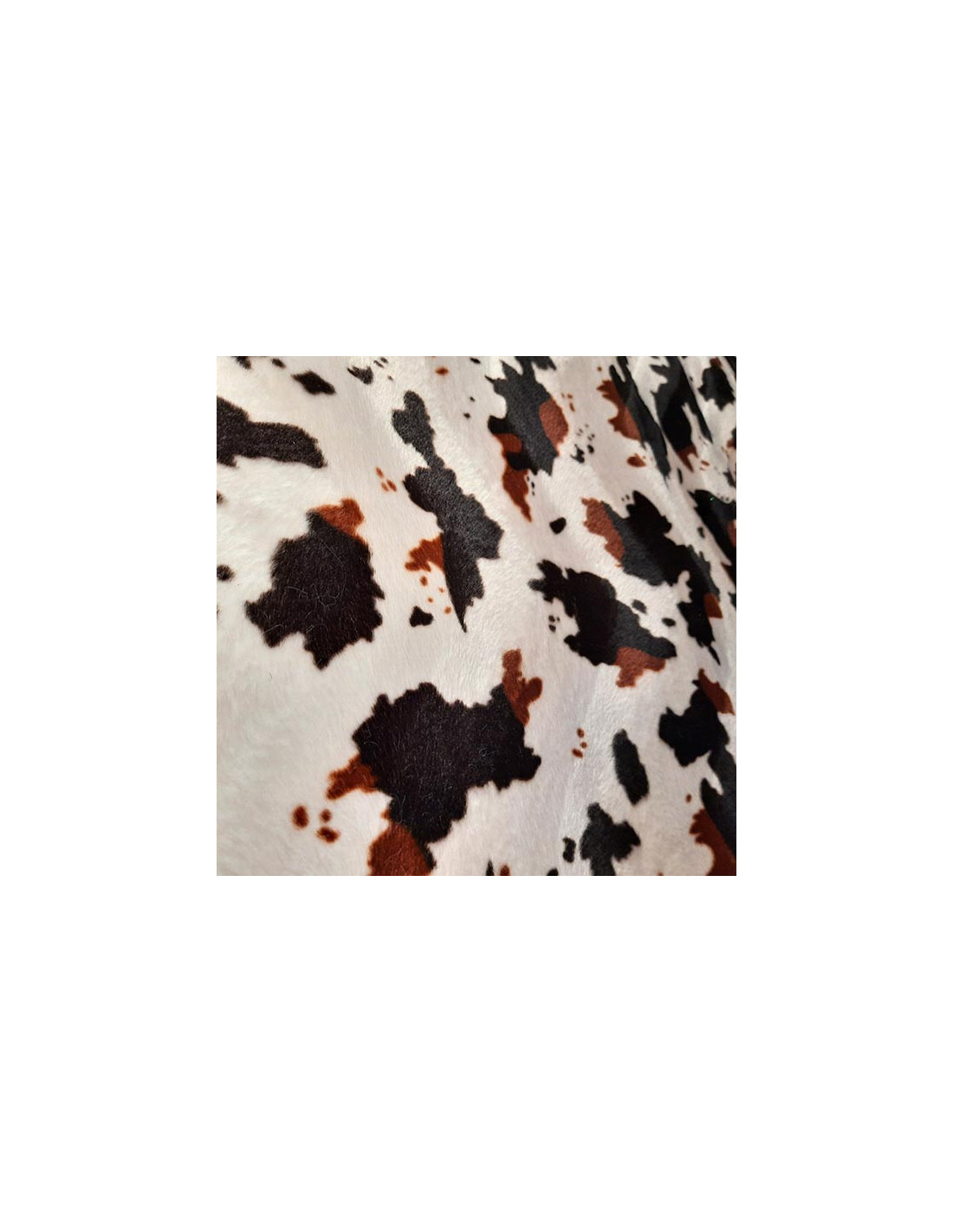 Tejido de Mutón de pelo corto con estampado de animales: vaca, leopardo, cebra, jirafa, potro y tigre. Este tipo de tela, imitación al pelo natural, es ideal para disfraces de animales o la confección de mantas dada su suavidad y aporte de calor.