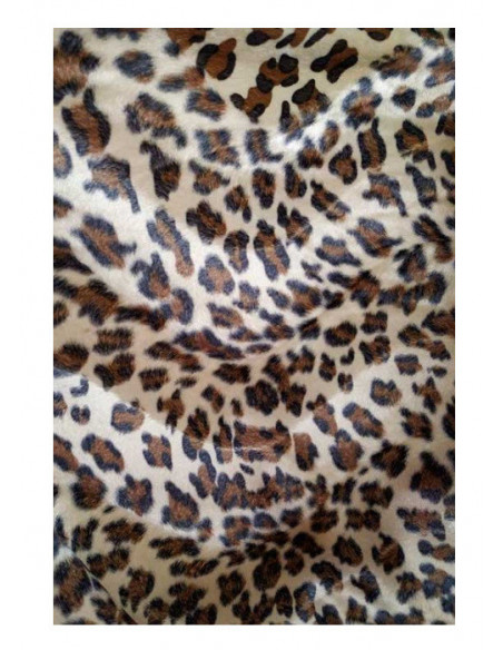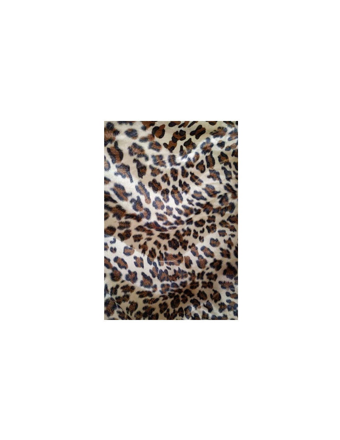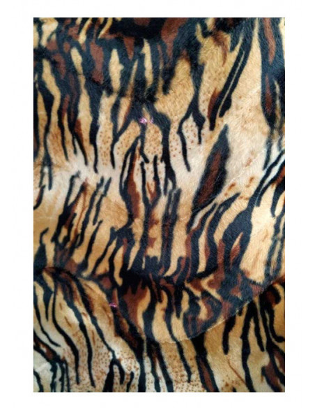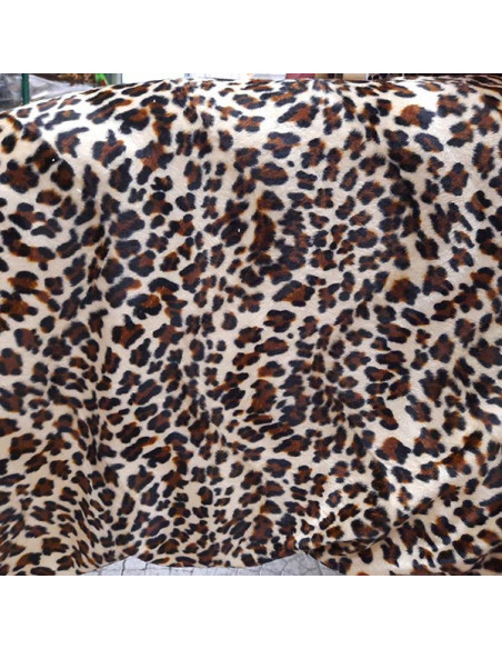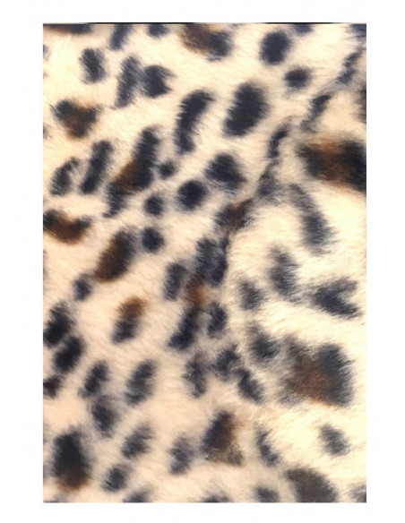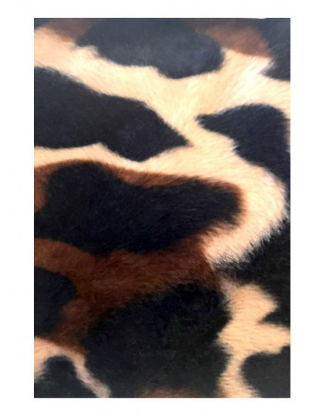 Tejido de Mutón con estampado de animales imitación a la tela de pelo, fabricado en acrílico 100%. Tiene una anchura de 150 cm.