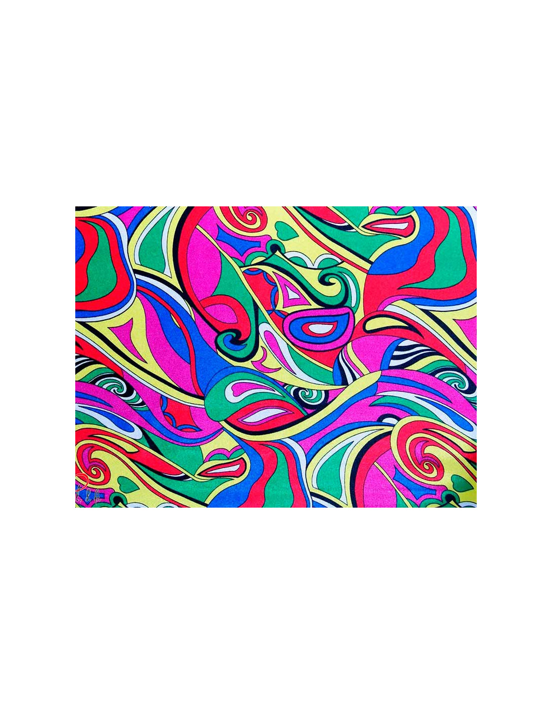 Tela de Raso psicodélico en 100%poliester de 150cm de ancho. Tela ligera y con mucha caída