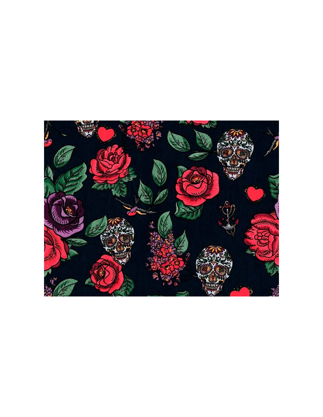 Tela fantasía Río estampada con motivos estilo Rock n Roll o Pin Up.