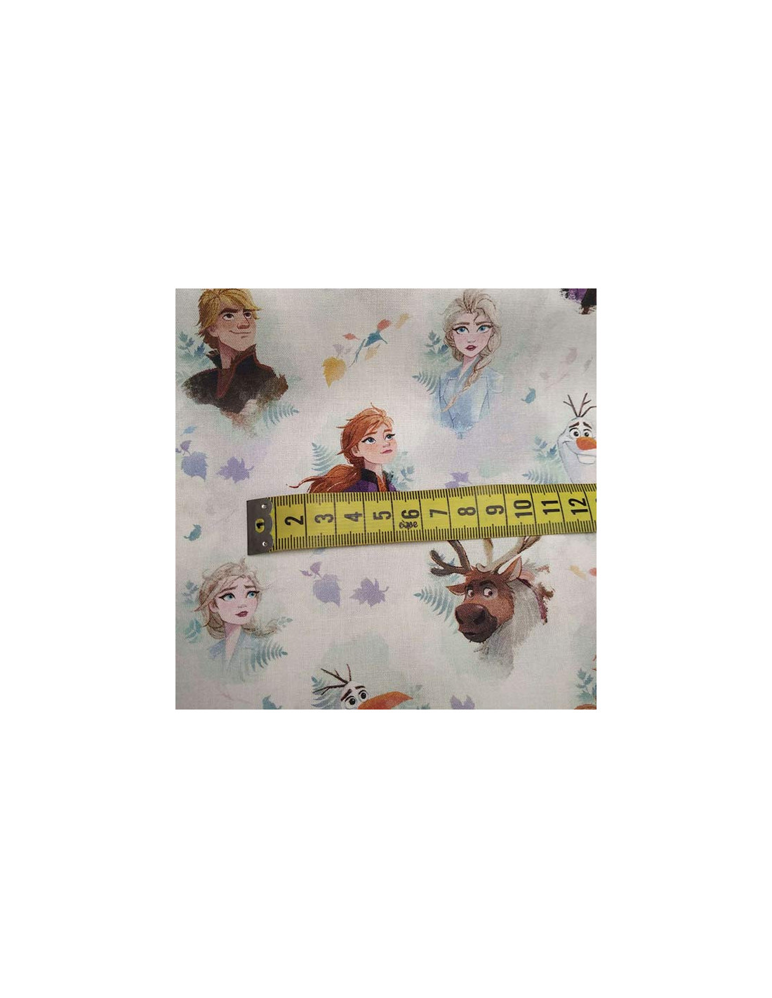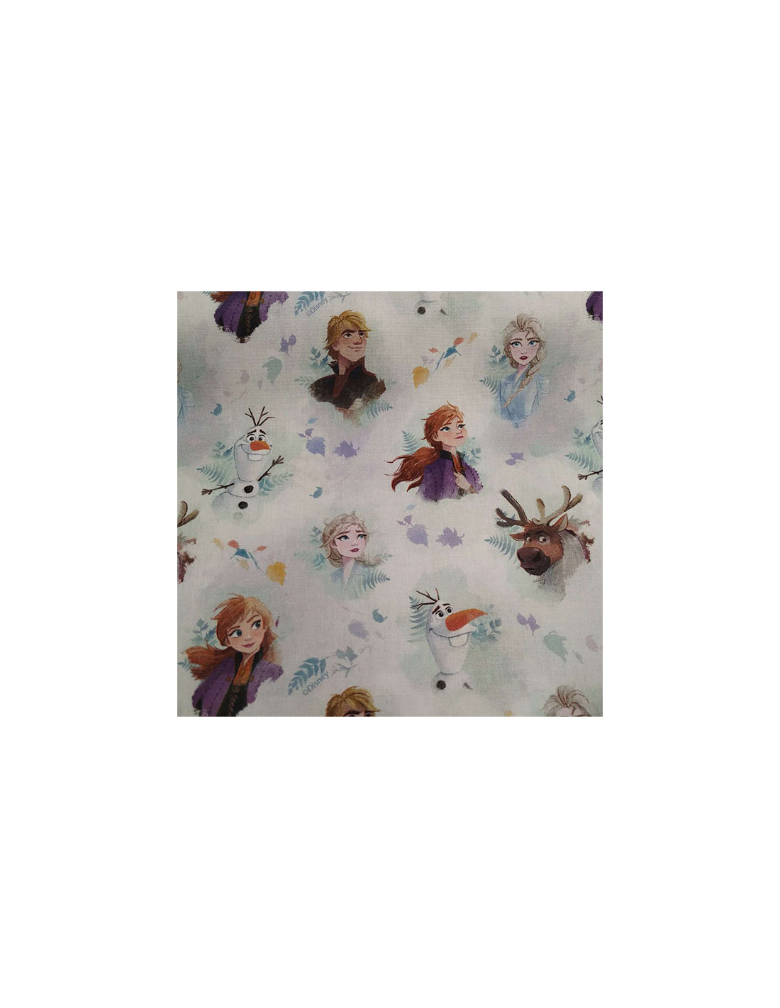 Tela Frozen con una base de color blanco y los rostros de los protagonistas de la película de Frozen 2.