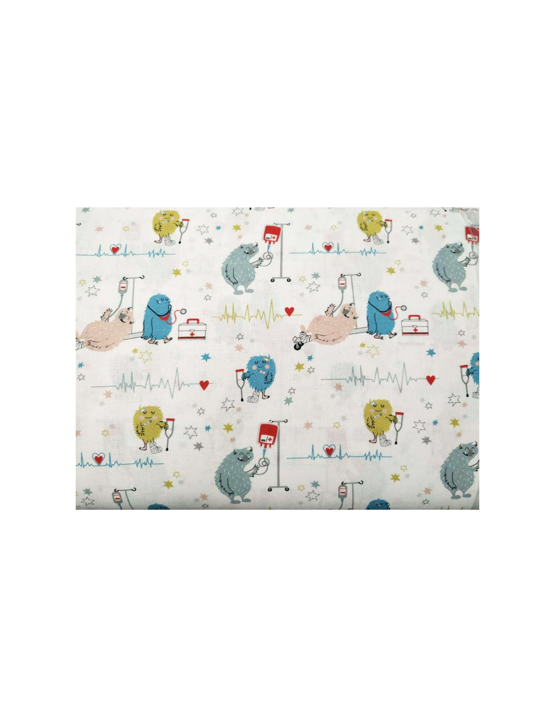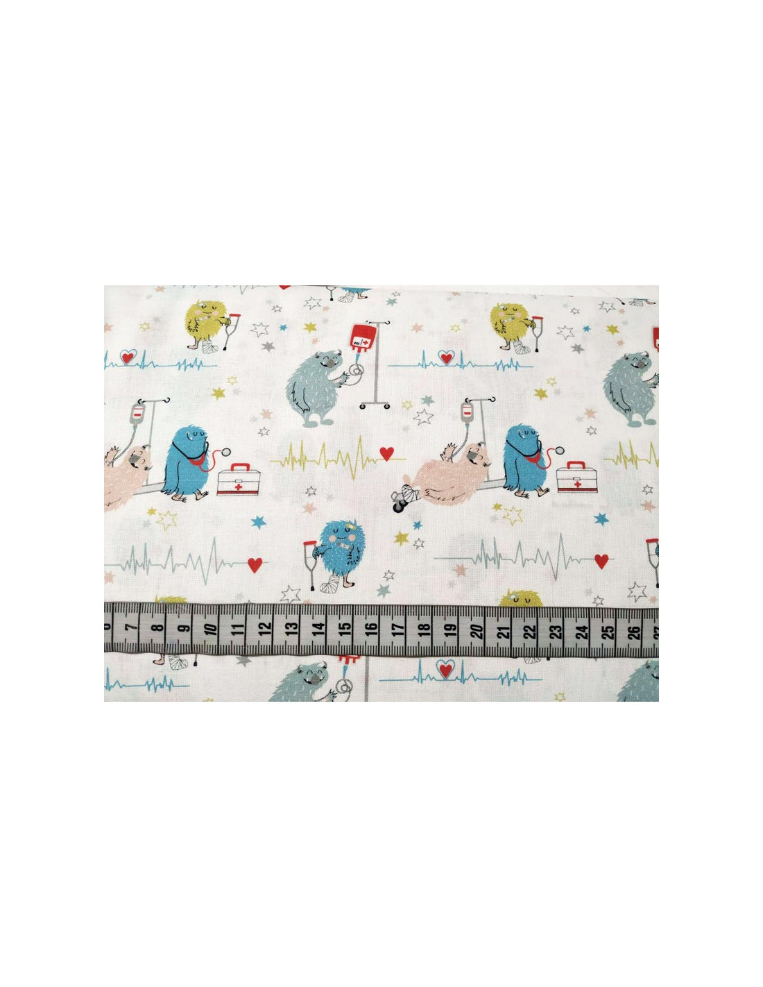 Tela médicos monstruitos que se vende por metros, con una composición 100% algodón y que mide 150cm de ancho.