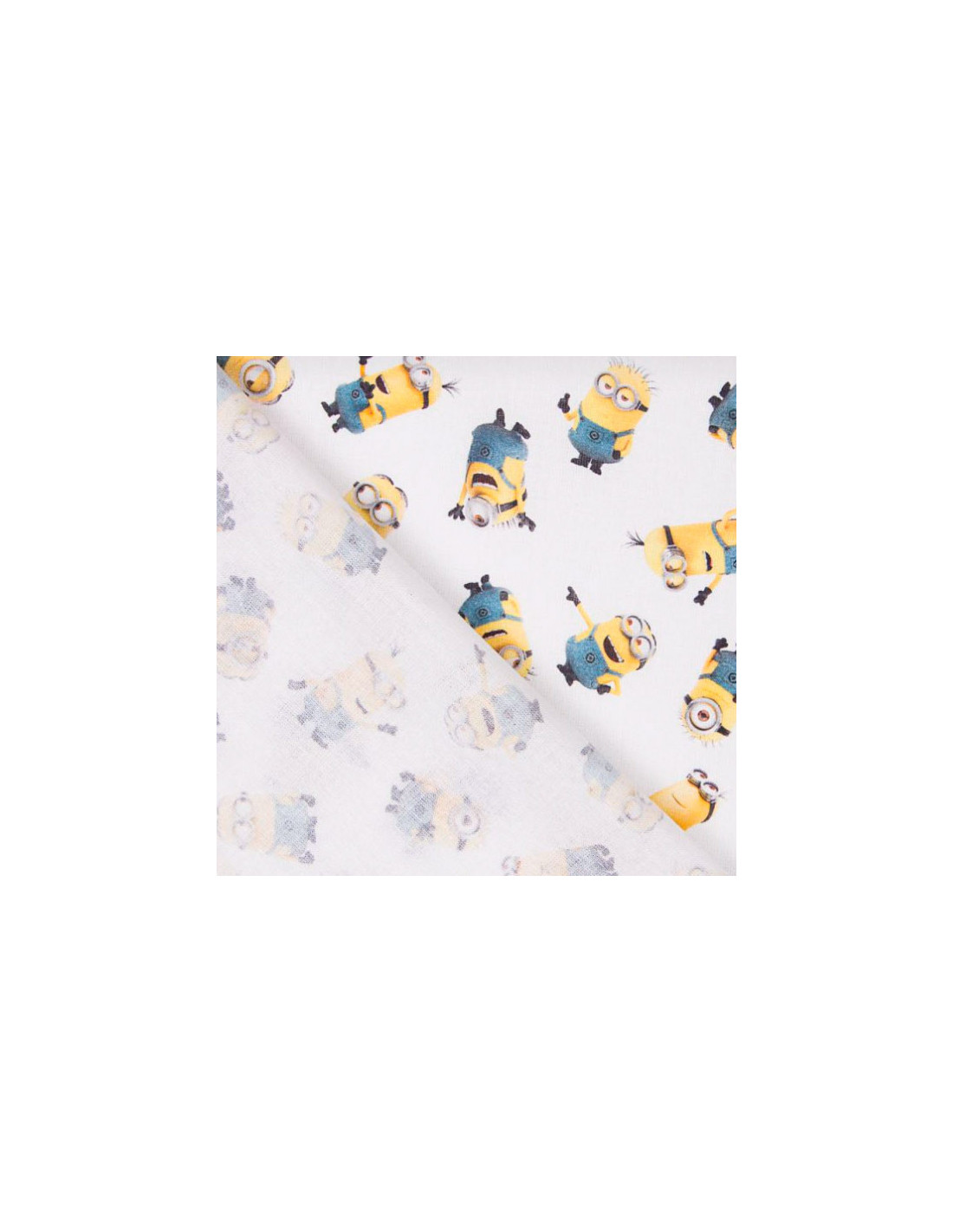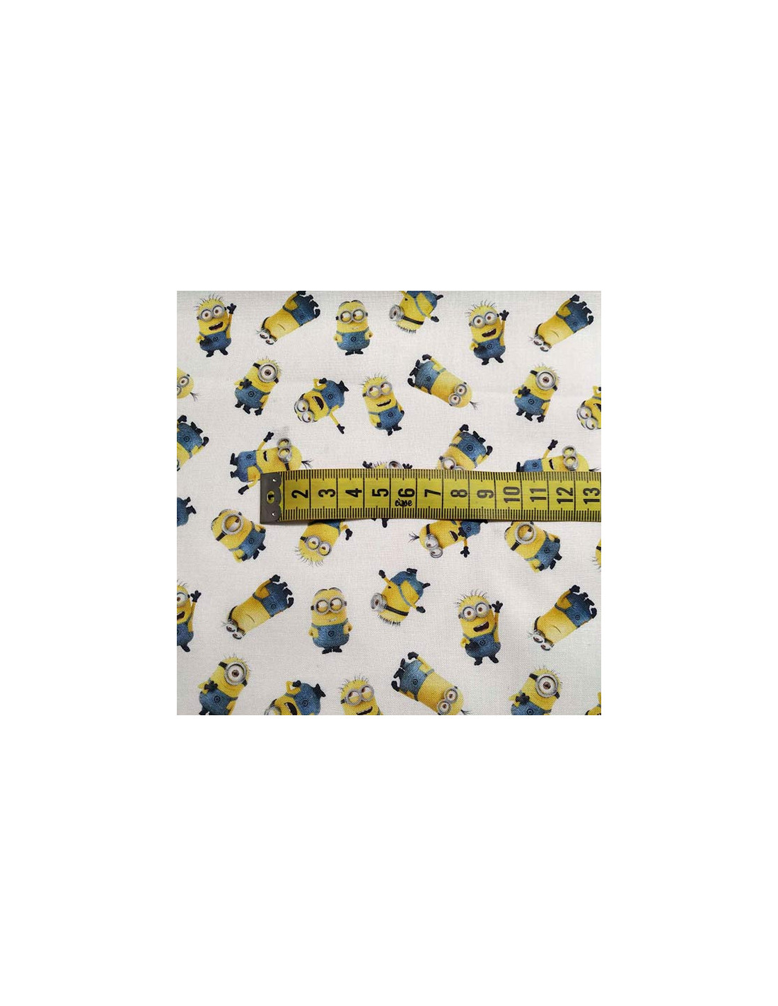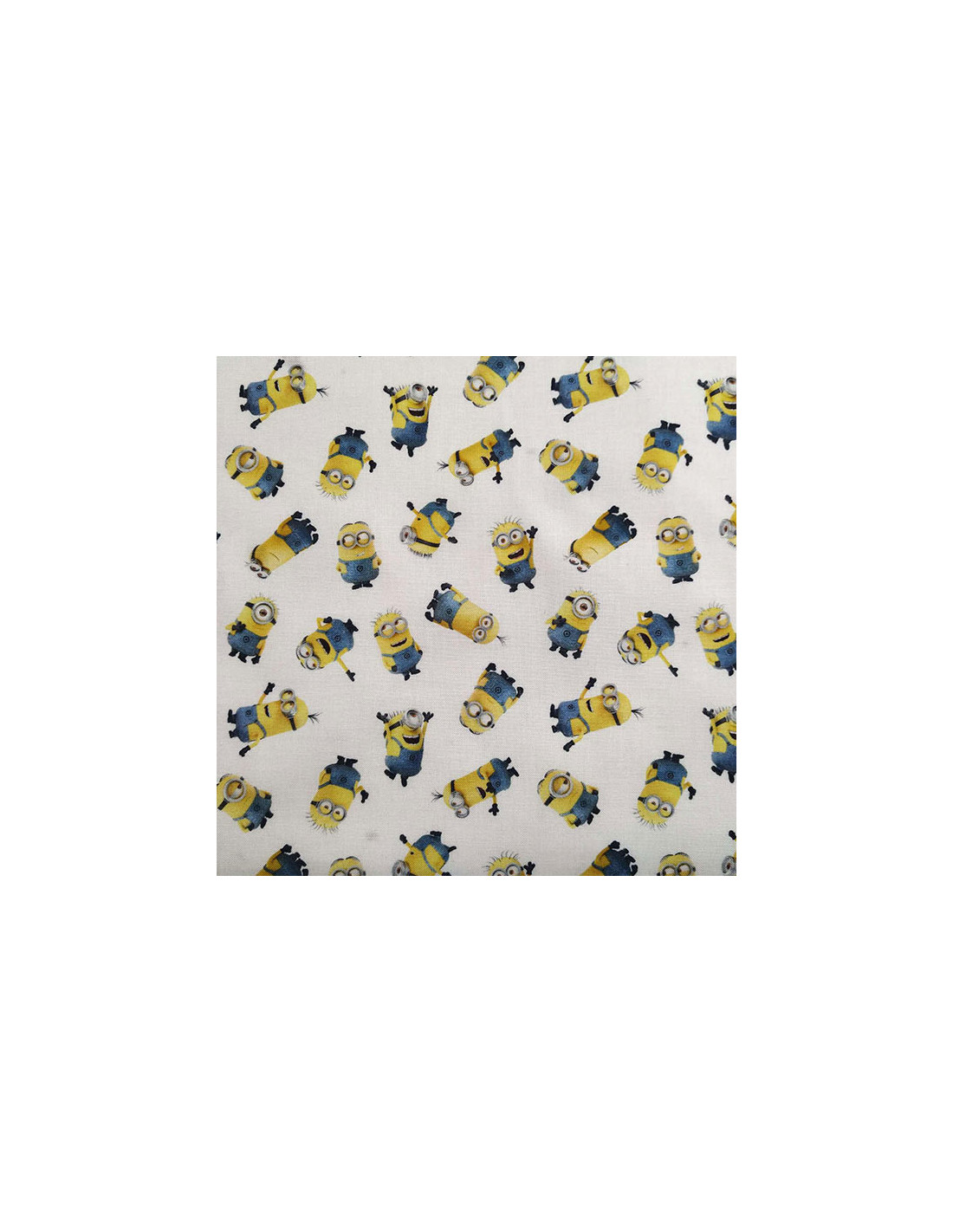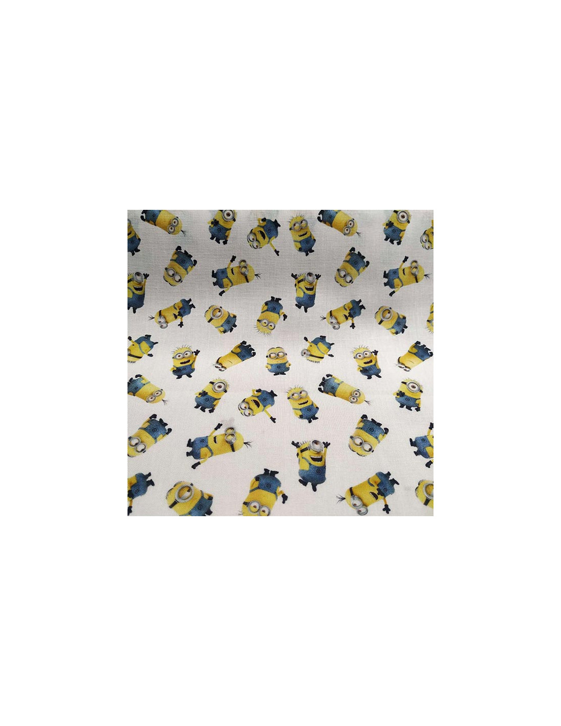 Divertida Tela Minions para los fans de la famosa película de Gru y sus originales personajes. Este popelin de color blanco estampado con minions de 2-3cm aproximadamente es ideal tanto para prendas textiles como costura creativa y decoración.