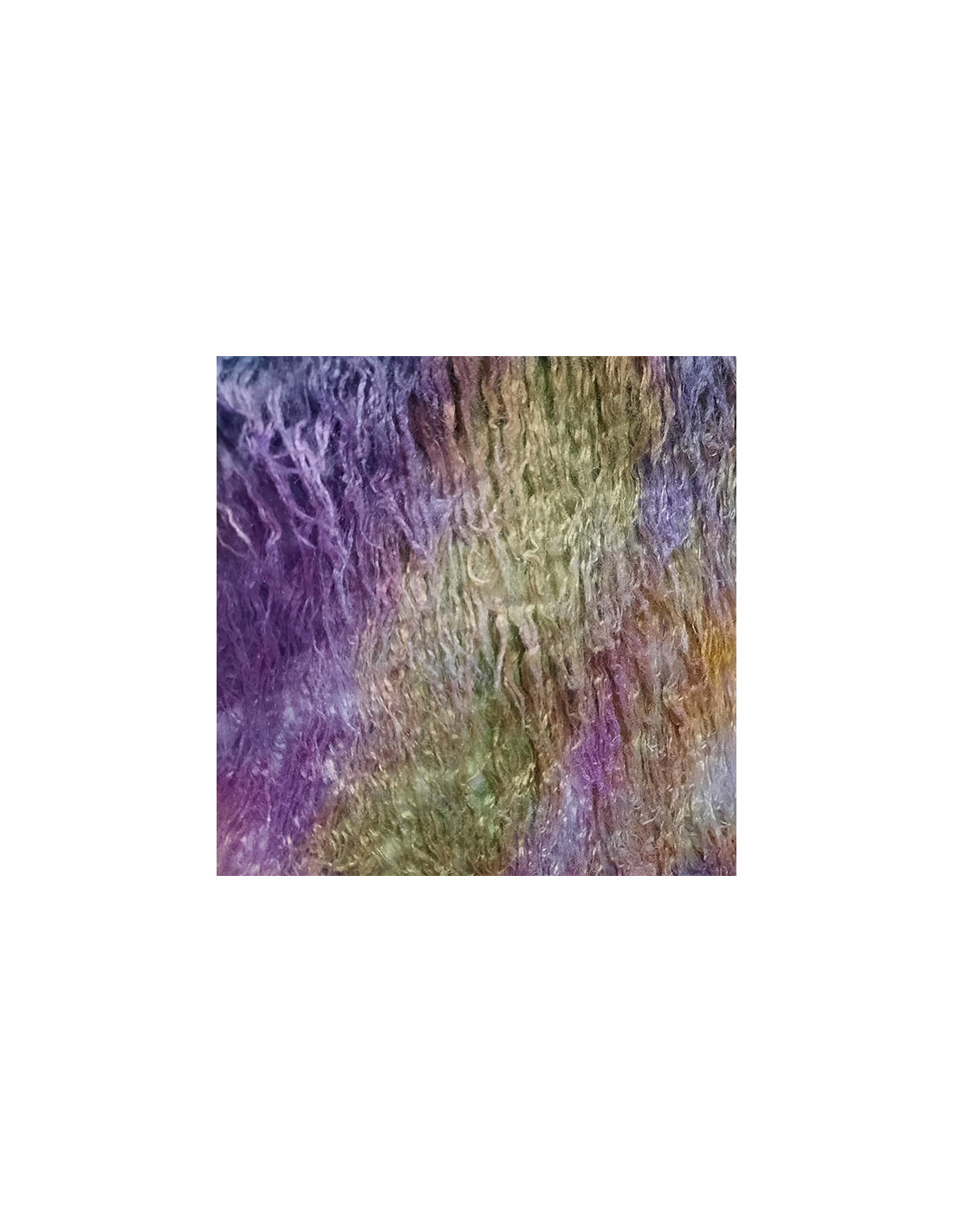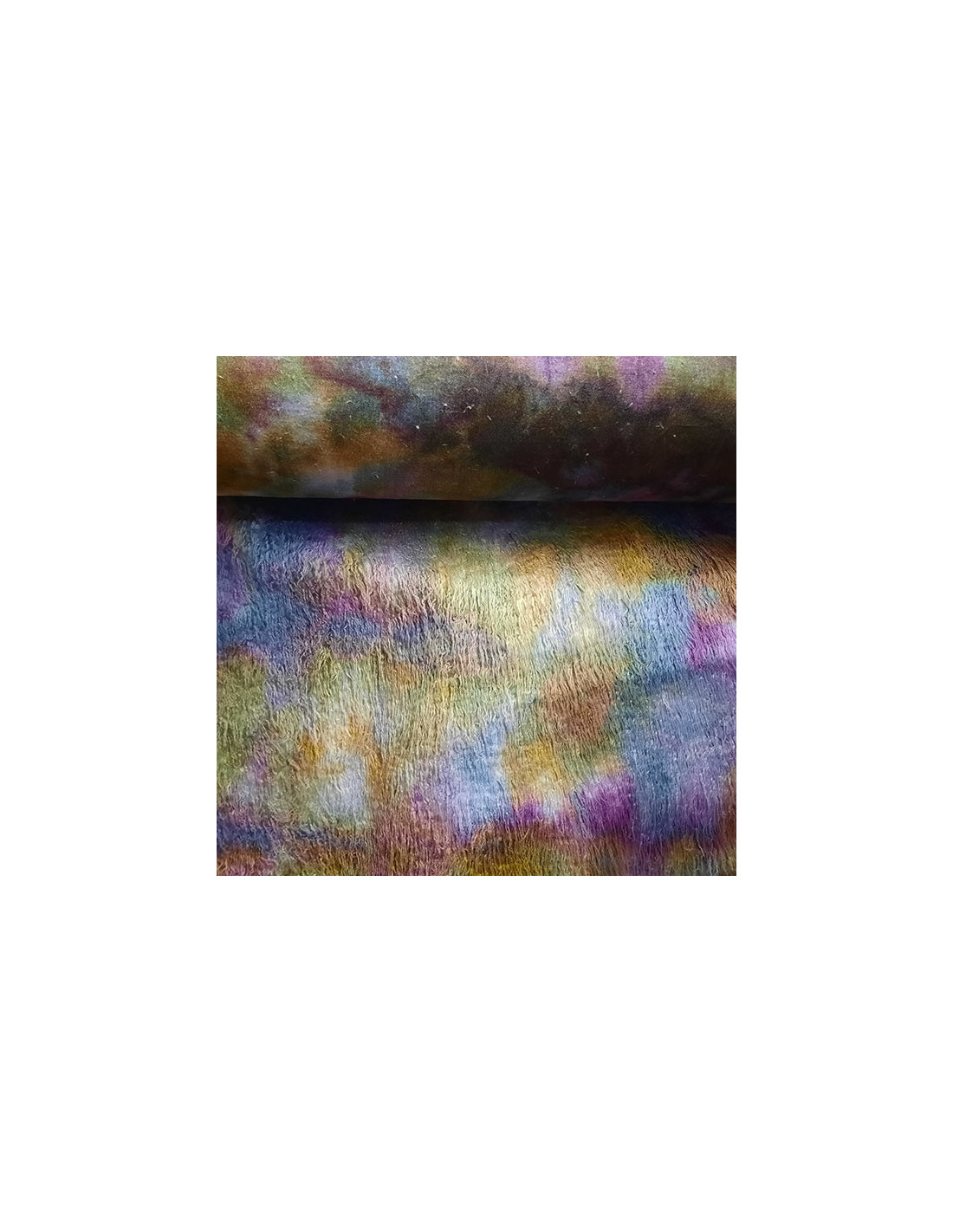 Tela pelo de colores de un tacto agradable en tonos morados, azules, amarillo y verde. Es una tela muy original con un pelo largo rizado de entre 4 y 7 cm aproximadamente.