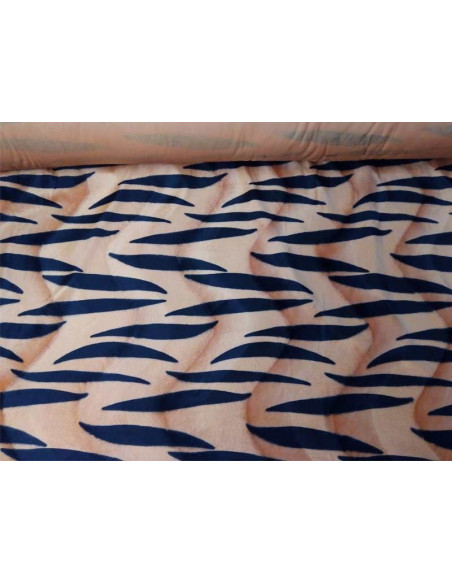 Tejido de Mutón en base naranja y estampada con rayas negras, ideales para disfraces de Los Picapiedra, o todo lo relacionado con tribus africanas.