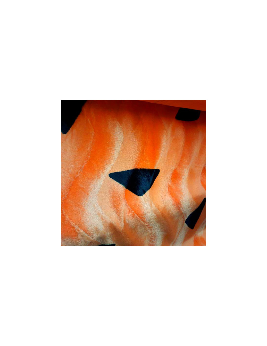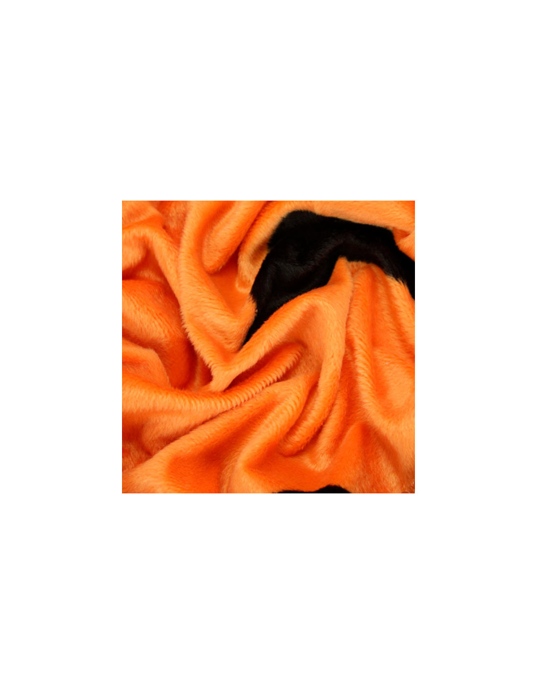 Tela Picapiedra troglodita de pelo muy cortito y un agradable tacto. El fondo de la tela es de un color anaranjado con formas negras estampadas, estampado típico de los picapiedra. Este tejido tipo mutón es ideal para disfraces o trajes de comparsas.