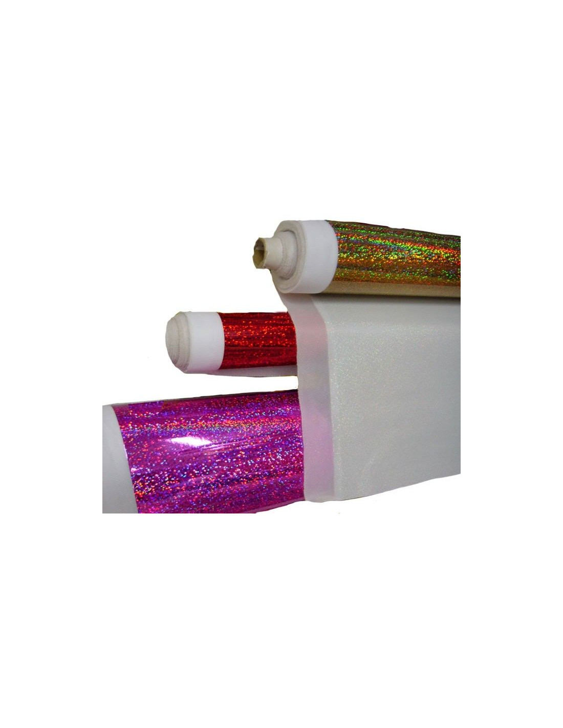 Tela plastificada destellos láser,tejido muy vistoso y resistente ideal para fiestas. El ancho de la tela es de 1 m y 100%poliester.