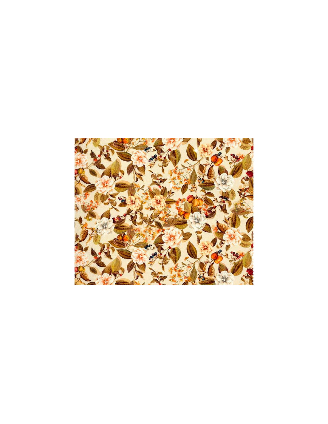 Tela popelín otoño con una base amarilla y estampada con flores, todo ello en unos tonos muy otoñales.