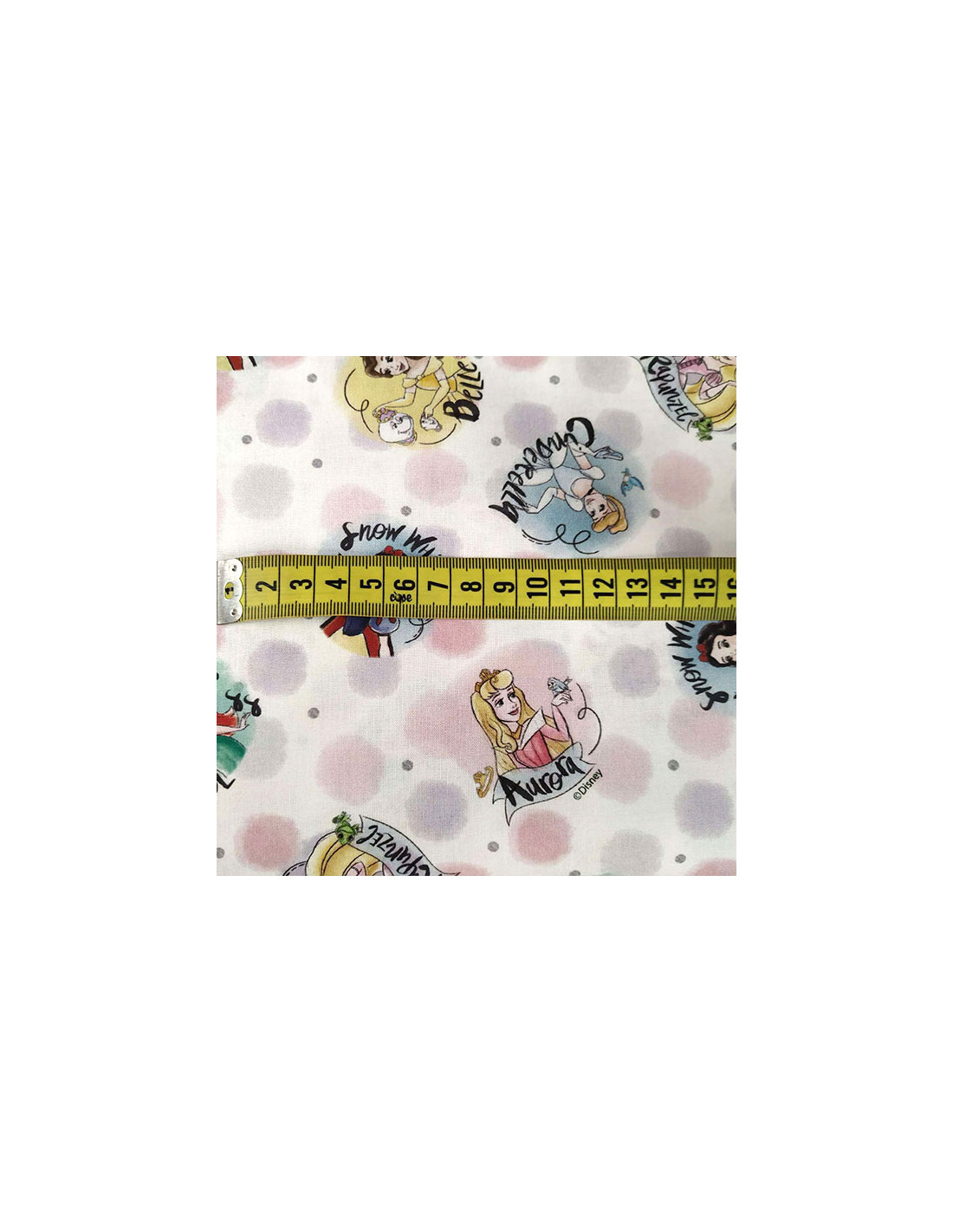 Tela princesas Disney que se vende por metros, con una composición 100% algodón y que mide 150cm de ancho.