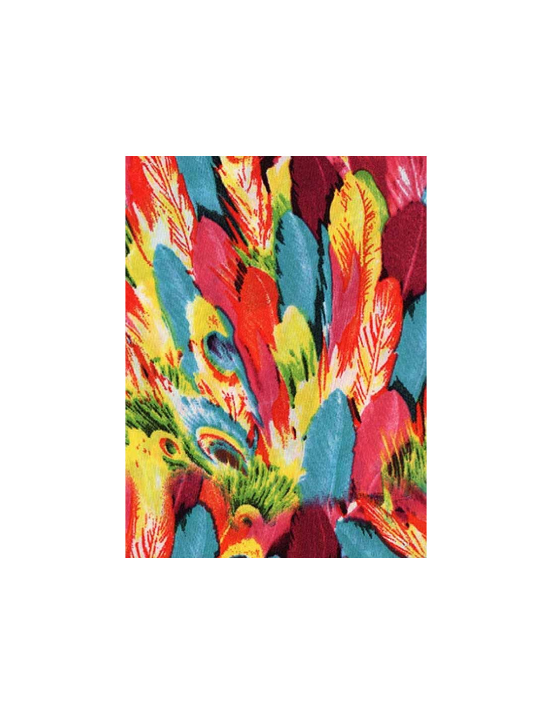 Tela Stretch Plumas multicolores para disfraces de Halloween o Carnaval. Fabricado el 100% en poliéster, se trata de un tipo de tejido voluble, ligero utilizado sobre todo en la confección de faldas y pantalones. Ancho de 150 cm. Se vende por metros.