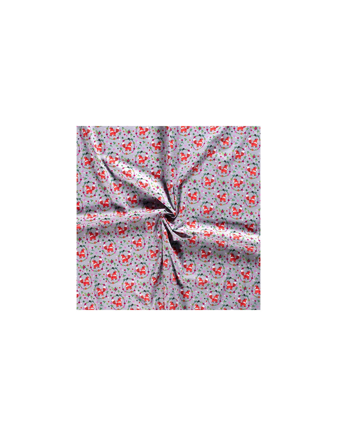Preciosa tela zorros de algodón estampada con animales sobre un color gris claro. Esta tela infantil es perfecta para confeccionar prendas de ropa y accesorios o mascarillas para los más pequeños.