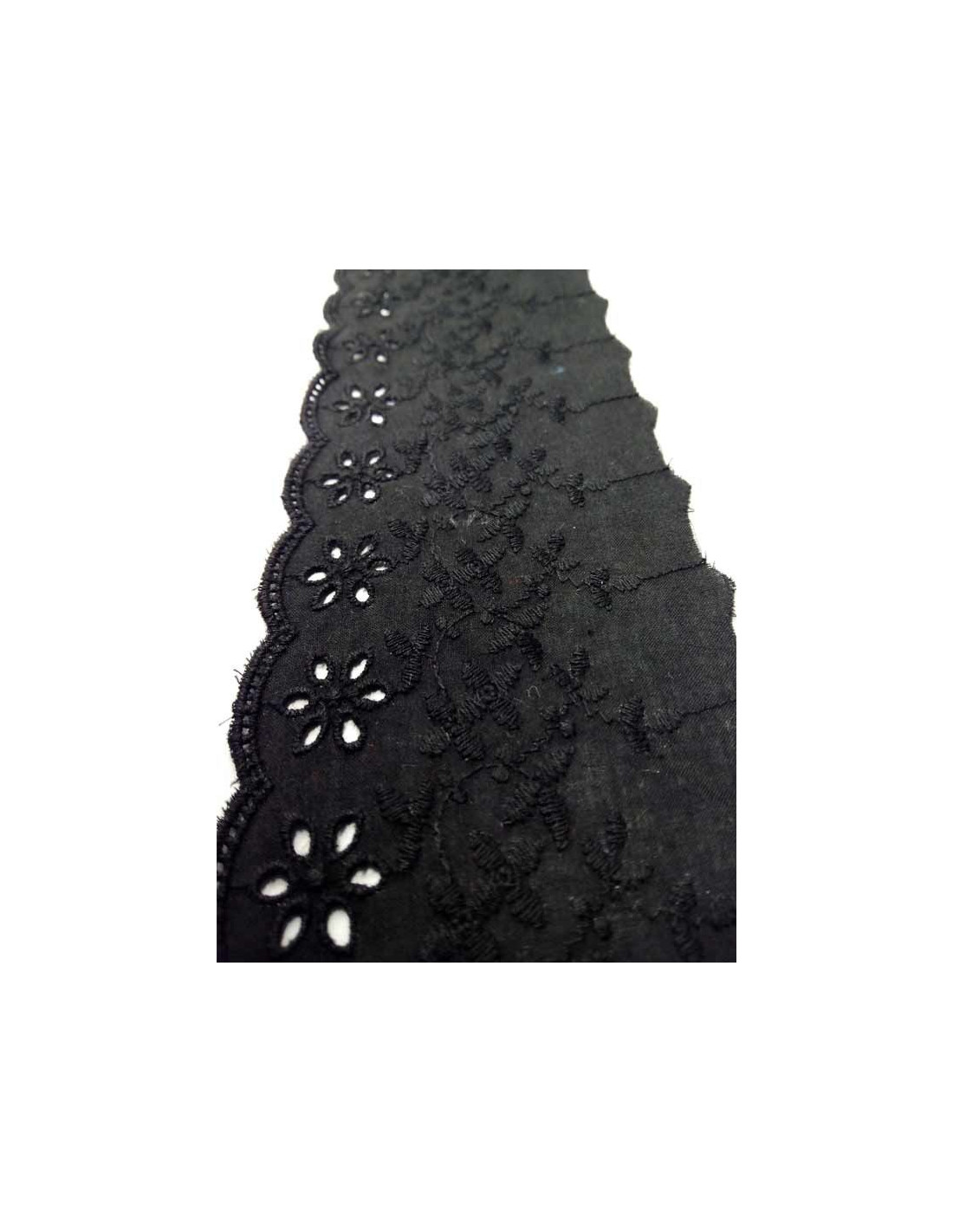 Terminación en color negro con detalles bordados, de 8cm de anchura. Se vende por metros. Unidad mínima de compra 1m.