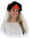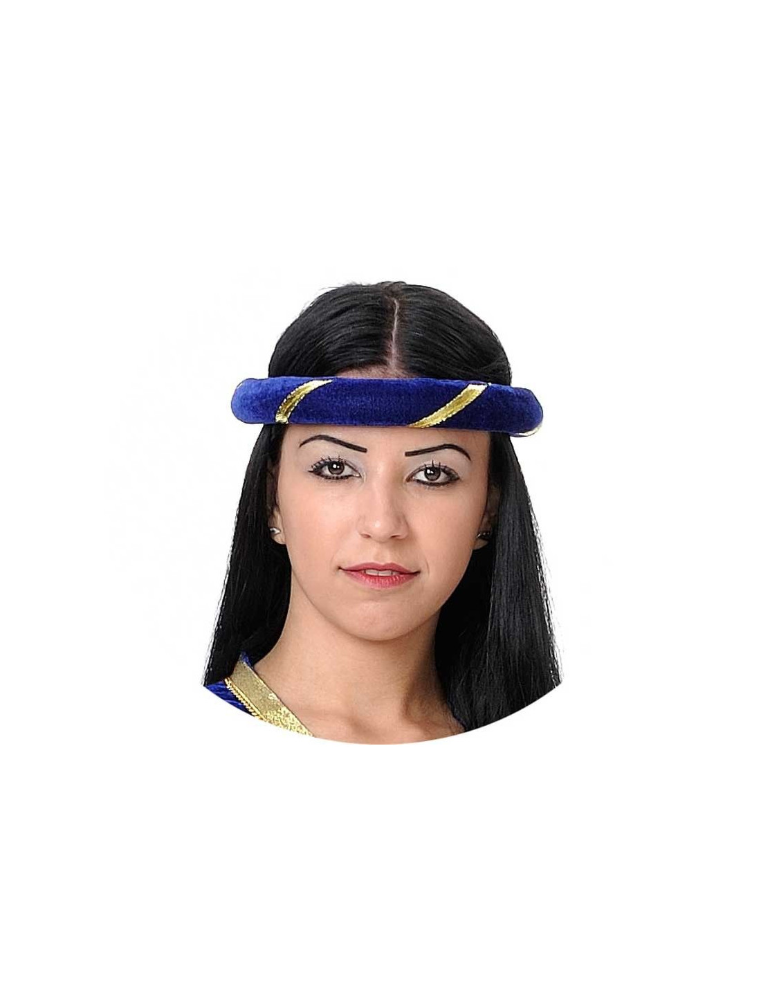 Tocado medieval en tejido de terciopelo azul decorados con cinta dorada alrededor y con elástico ajustable para acoplar perfectamente a cualquier tamaño de cabeza. Válido para mujer y niña.