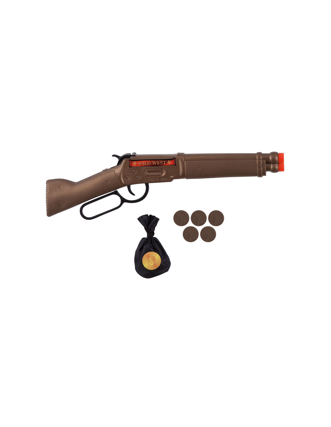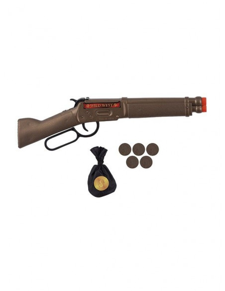 Vive la época del Oeste como Curro Jimenez con este trabuco de bandolero con monedas. Ideal para tu disfraz de pirata o del Farwest, estre trabudo de bandolero tiene unas dimensiones de 37cm de longitud e incluye un saco con 5 monedas de le época.