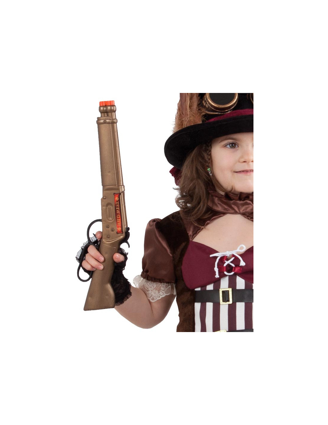 Incluye un trabuco de bandolero con monedas de plástico simulando doblones.