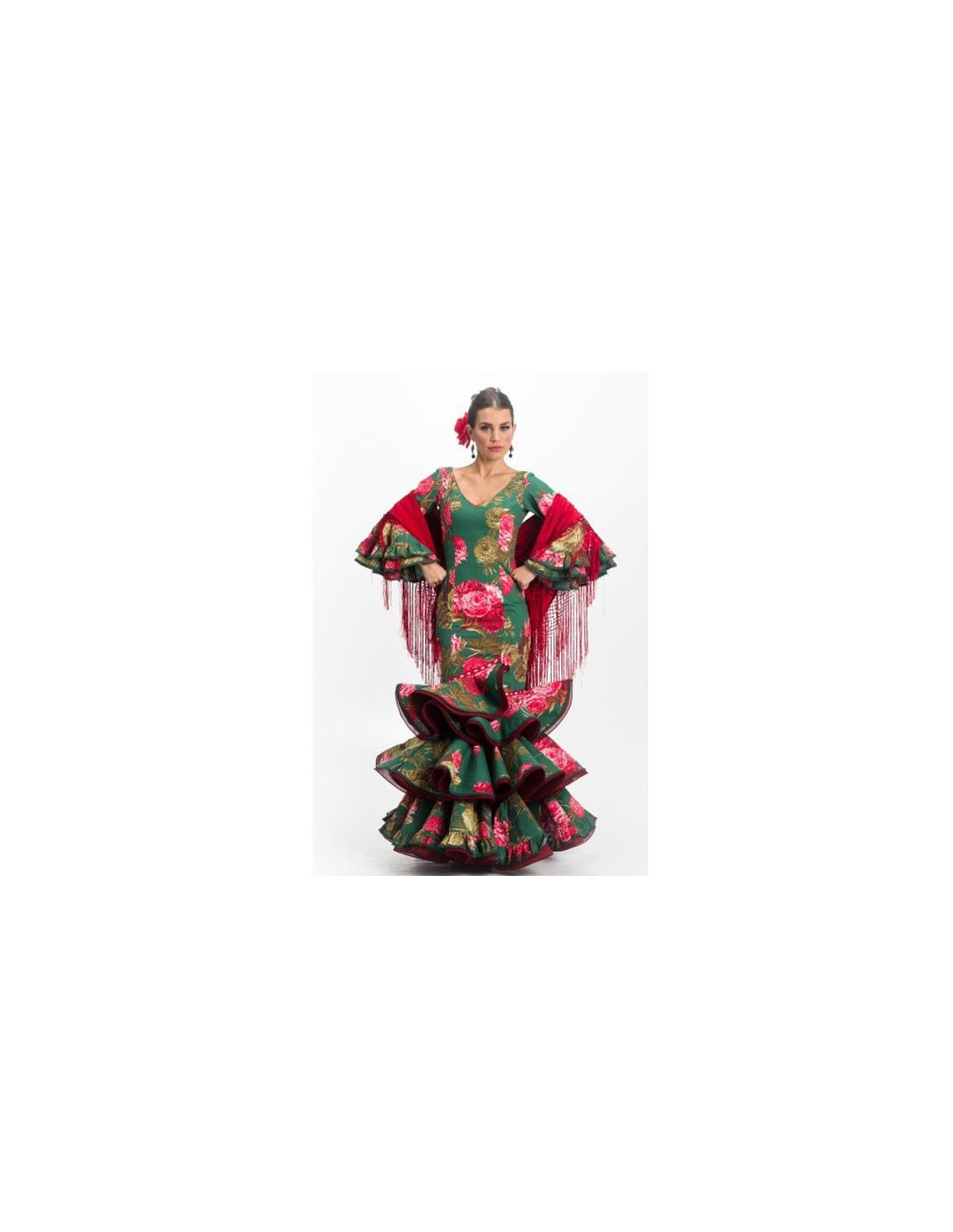 Traje andaluza de flores de alta calidad con volantes en mangas y vestido. Ideal para destacar en la feria de abril o fiestas andaluzas.