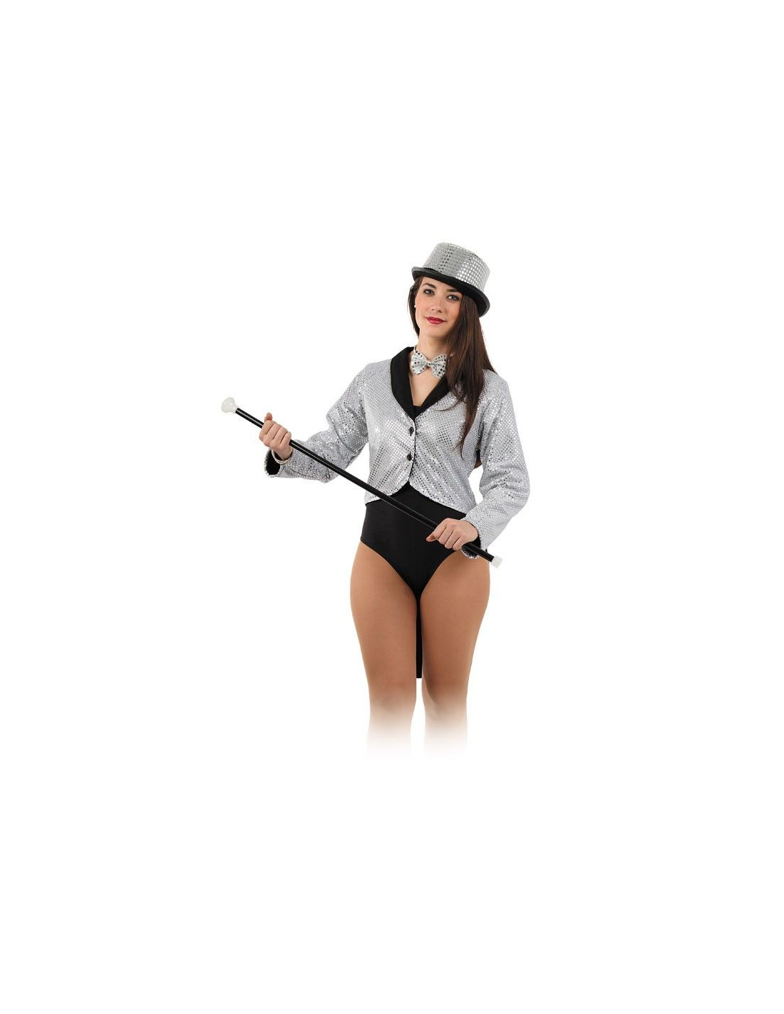 Serás la protagonista de tu fiesta o la presentadora del festival con este vistoso y sexy frac de lentejuelas. Combínala junto a una malla de cuerpo entero o un body, y no te olvides de complementarlo con una elegante chistera y un bastón dandy.
