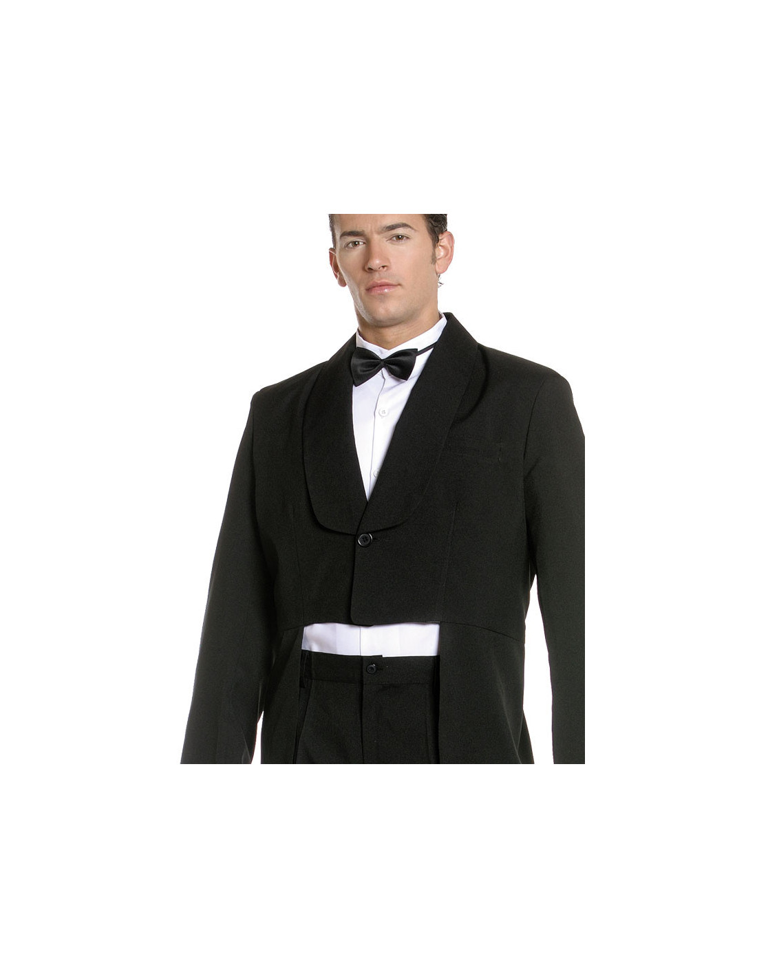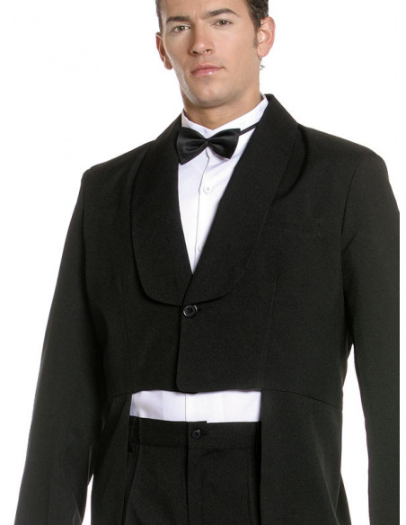 Disfraz Frac adulto unisex compuesto por chaqueta de frac y pantalón fabrciado en strech negro con unos acabado muy buenos, camisa blanca y pajarita negra.