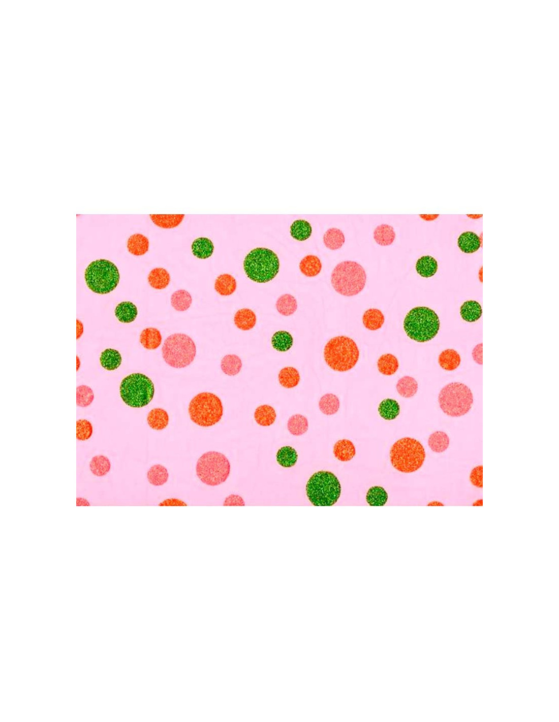 Tul Arinos es un tul rosa con topos de distintos colores y medidas.
