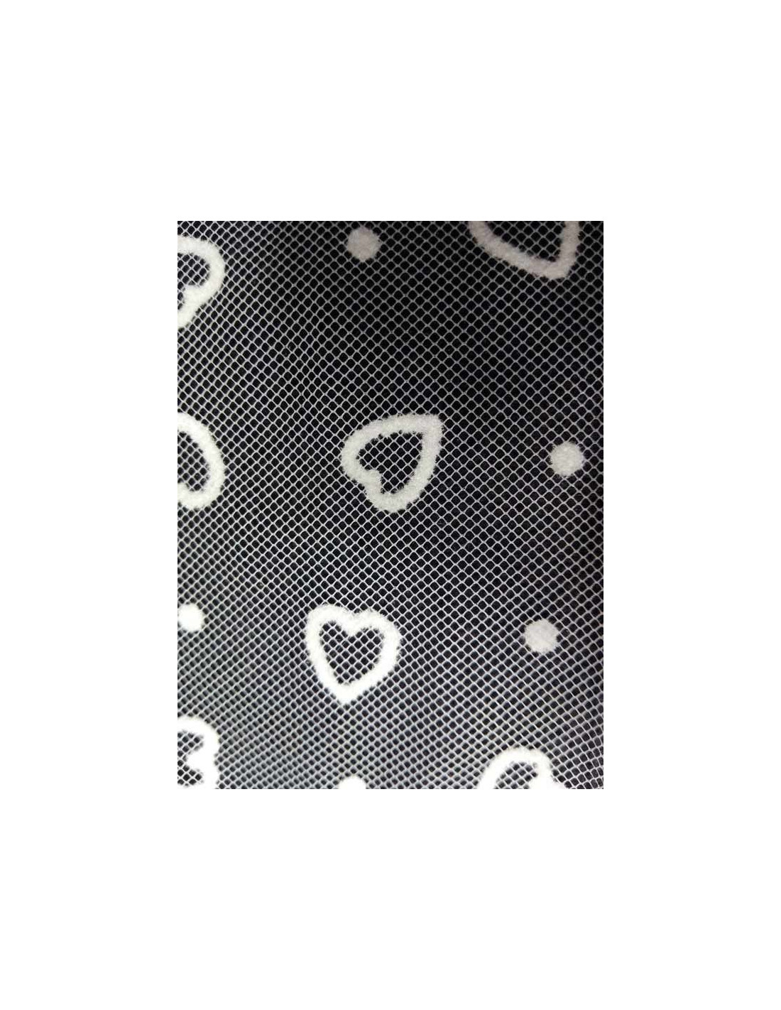 Tul blanco de 6cm de anchura con corazones de antelina en blanco. Se vende por metros. Unidad mínima de compra 1m.