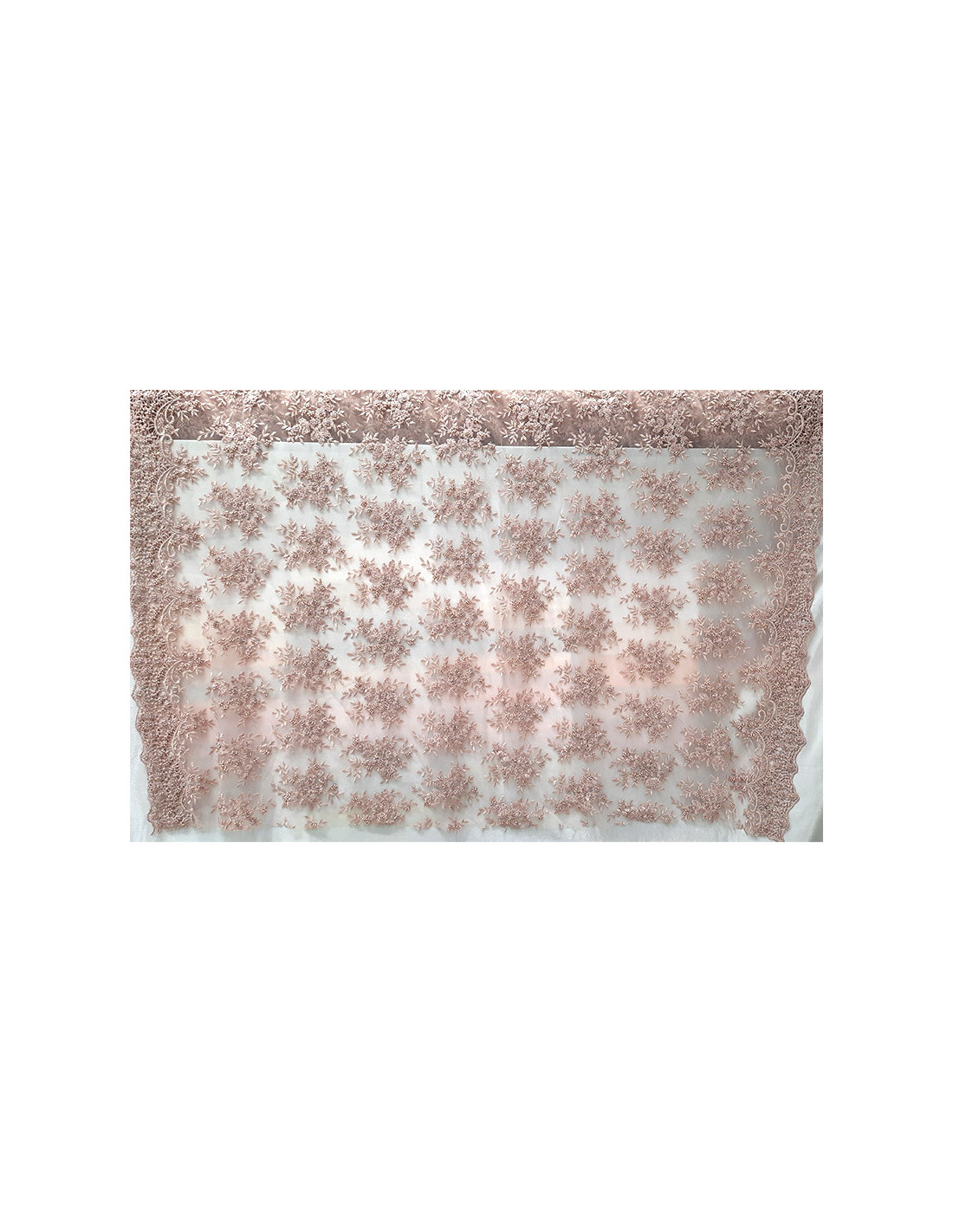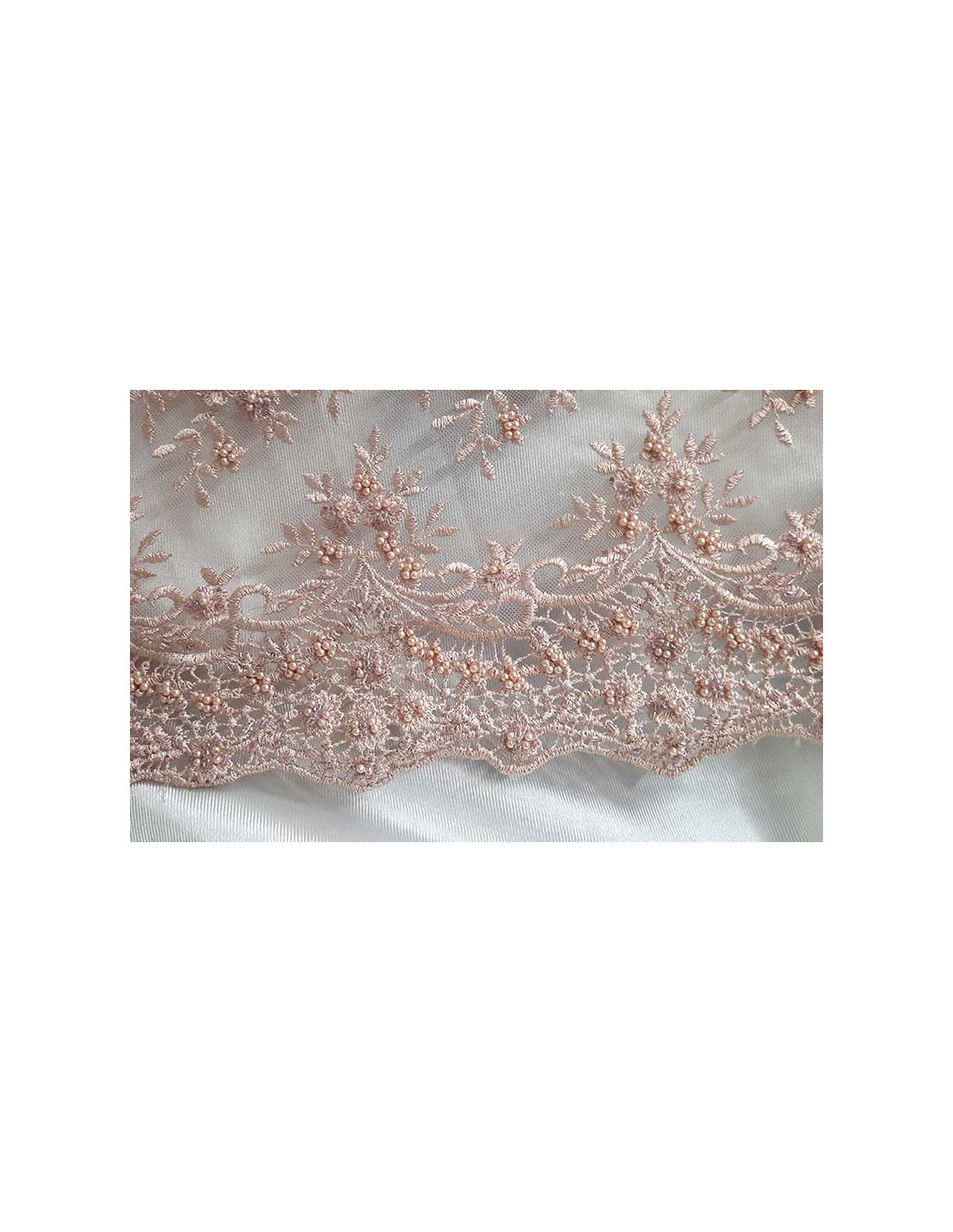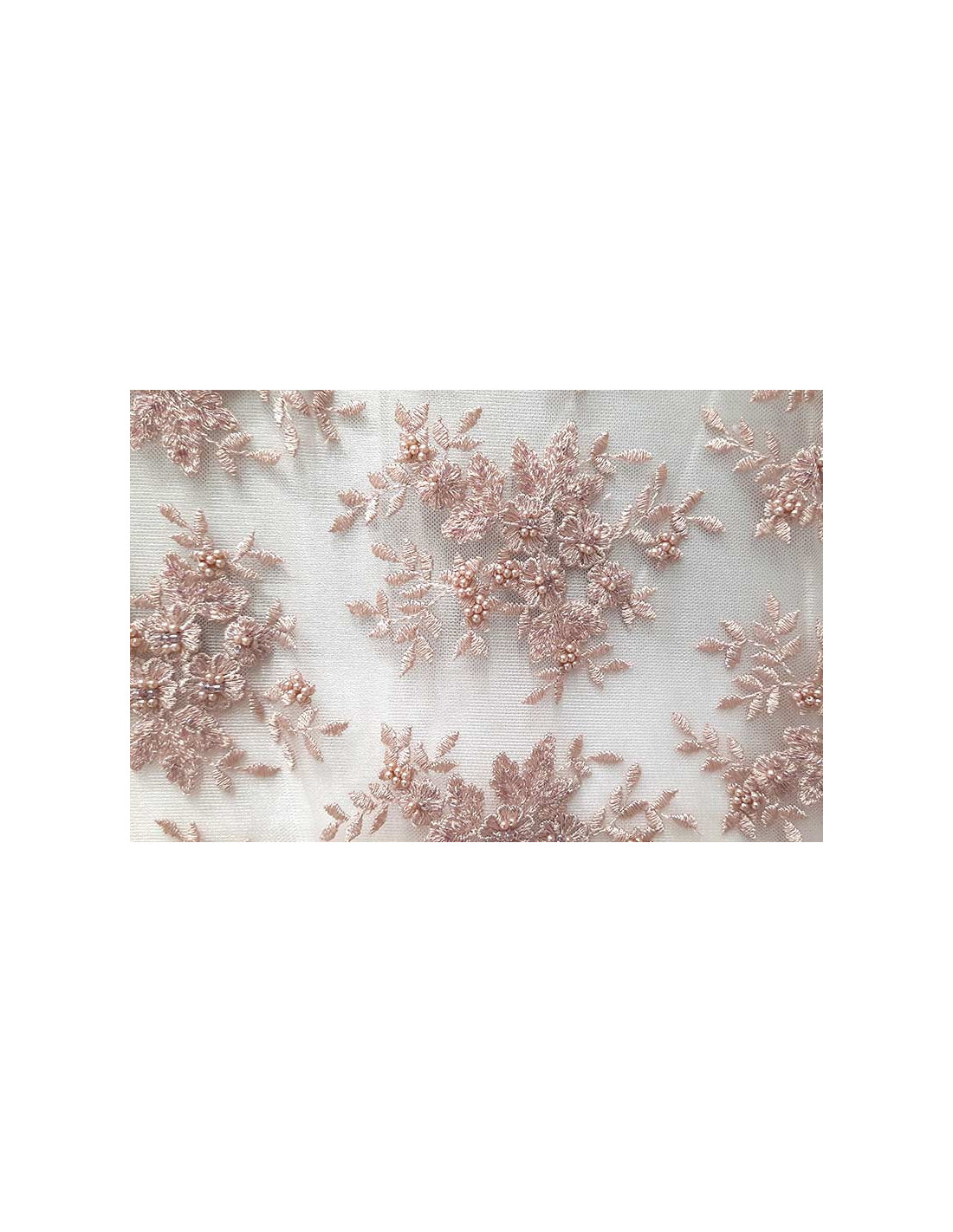 Precioso tul bordado con hilo y piedras Anne muy elegante al que no le falta detalle para tus vestidos y trajes de fiesta. En las fotografías se ha colocado una tela blanca de fondo ya que la tela es semitransparente.