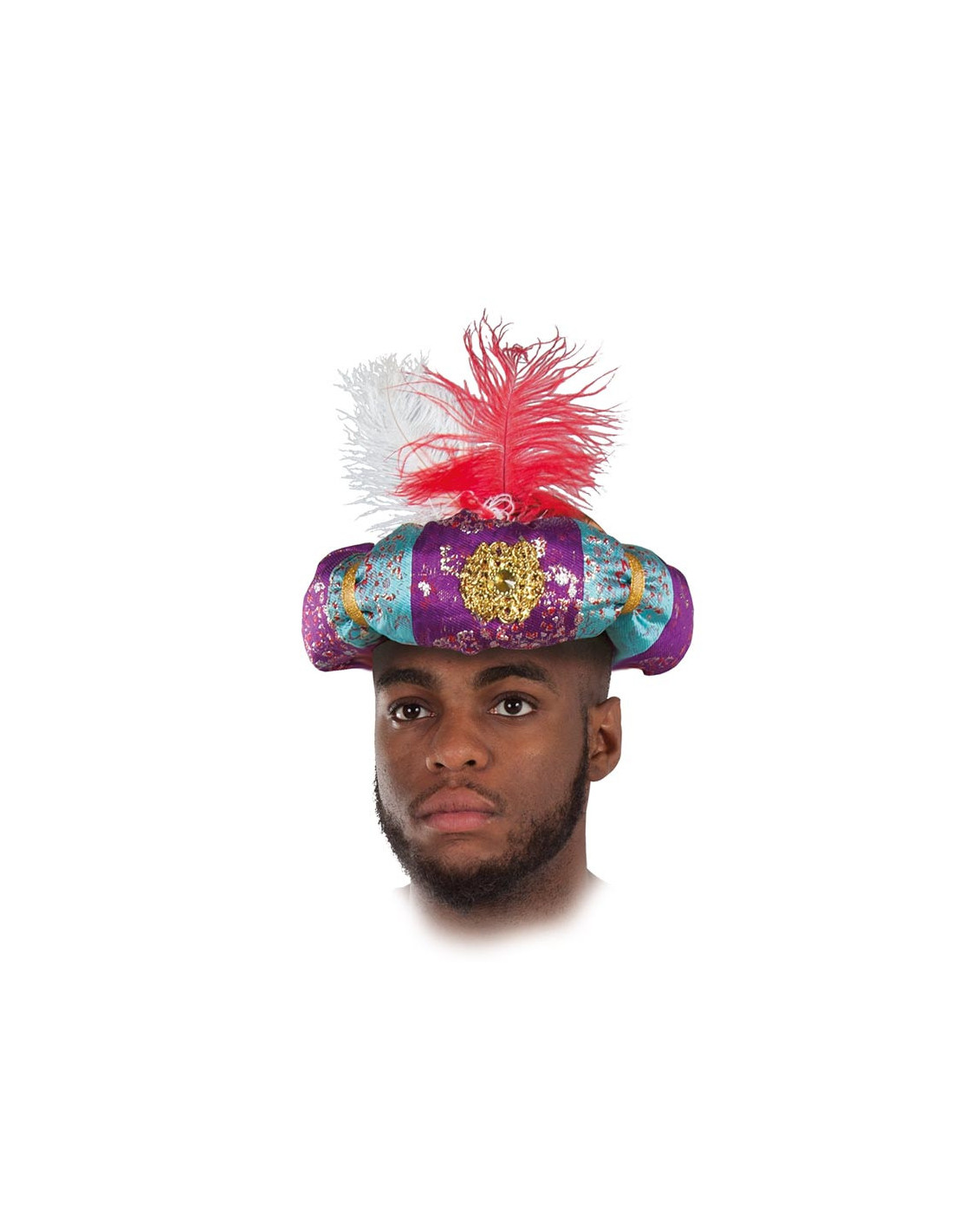 Turbante árabe con plumas para completar tu traje de Rey Baltasar o paje en Navidad y Belenes Vivientes.