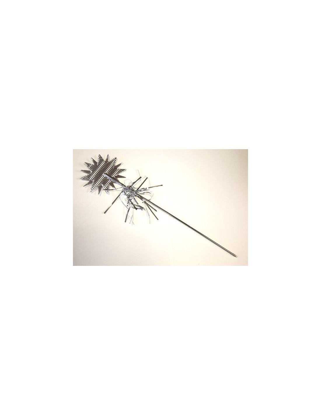 Lanza tus mejores hechizos y complementa tu disfraz de hada o bruja con esta varita mágica. Incluye una varita mágica, fabricada en plástico de pvc, con la punta en forma de estrella y decoración colgante en la parte meridional y disponible en color oro y plata.