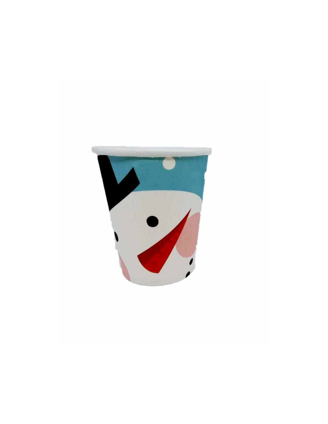 Vasos navideños muñeco navideño. Pack de 6 vasos de cartón.