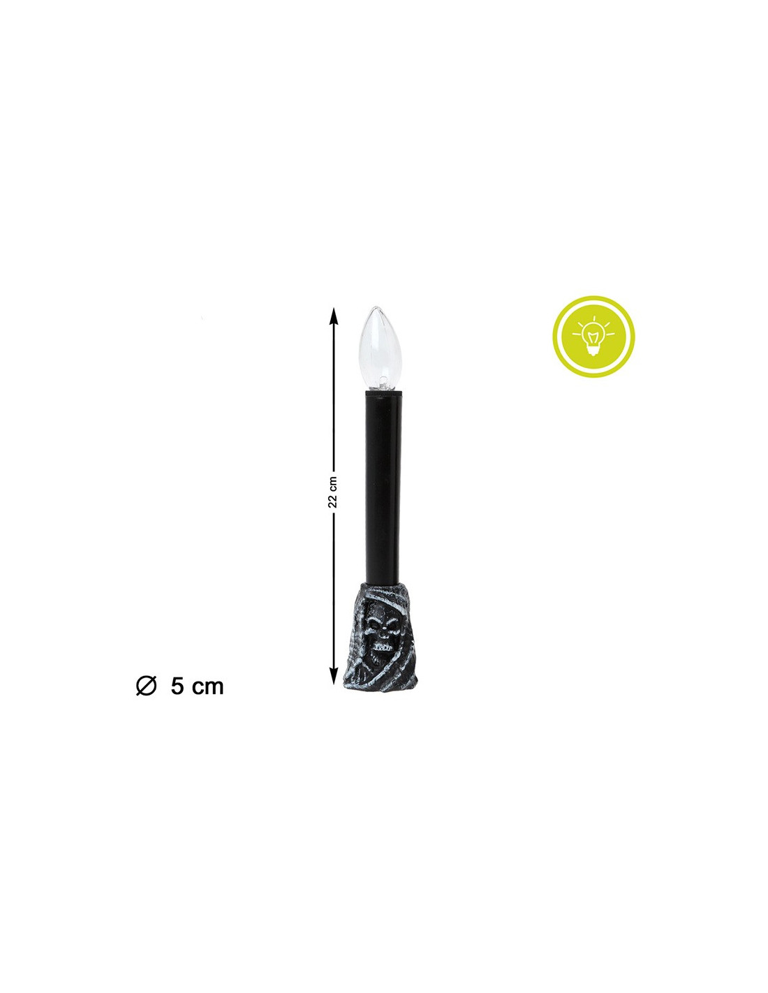 Vela para Halloween que mide 22cm de alto y tiene un diámetro de 5cm. Funciona con pilas no incluidas.