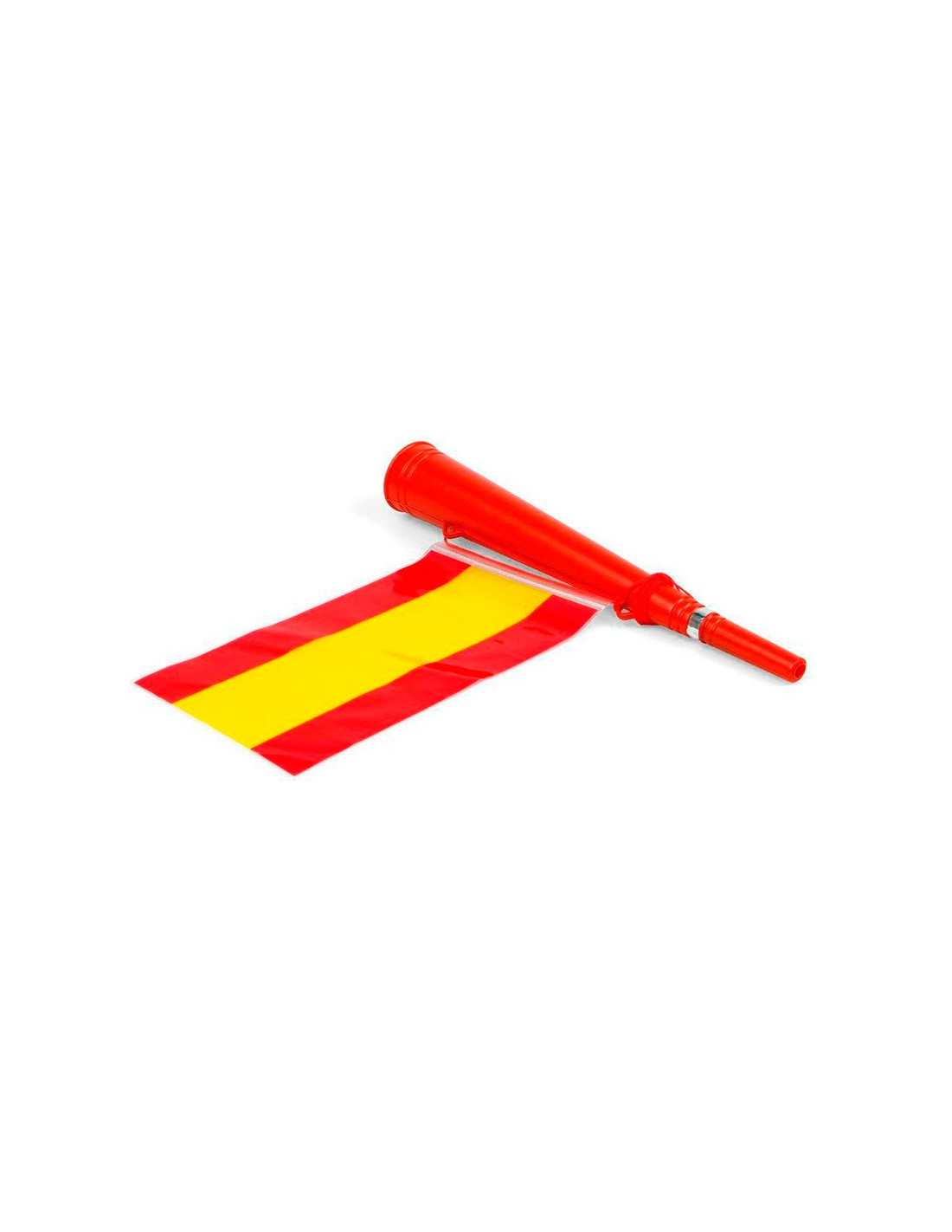 Vuvuzela de España tipo trompeta para animar a la selección española en el Mundial. Fabricada de plástico rígido, incluye una bandera de plástico atada con una cuerda roja. Dimensiones de 36x5,5cm.