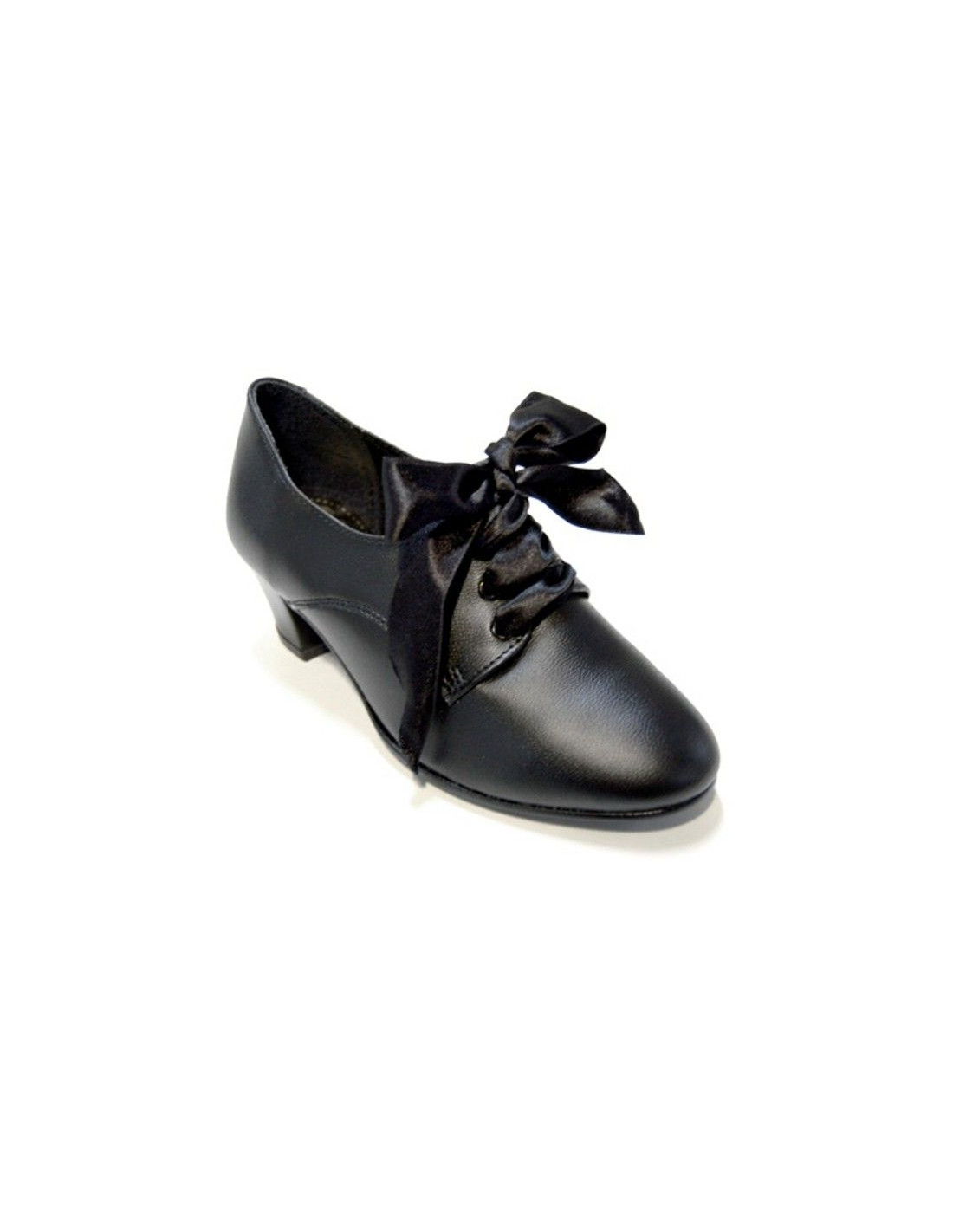Zapato regional negro con cinta de raso negro y tacón de 4cm aproximadamente.