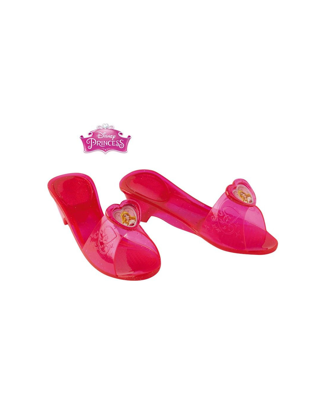Zapatos de Bella Durmiente Disney para niña con los que vivirá una fiesta de cuento. Fabricados de plástico blanco en color rosa, estos zapatos de princesa Disney para niña  están decorados con purpurina en su interior, y un precioso corazón con el dibujo de la princesa estampado en las solapas. Dimensiones de 20 cm de largo y 5cm de tacón (correspondiente a una talla 30 aproximadamente).